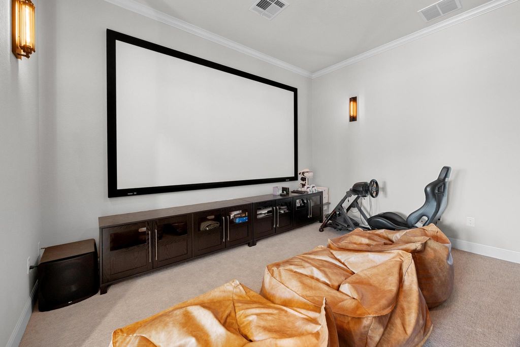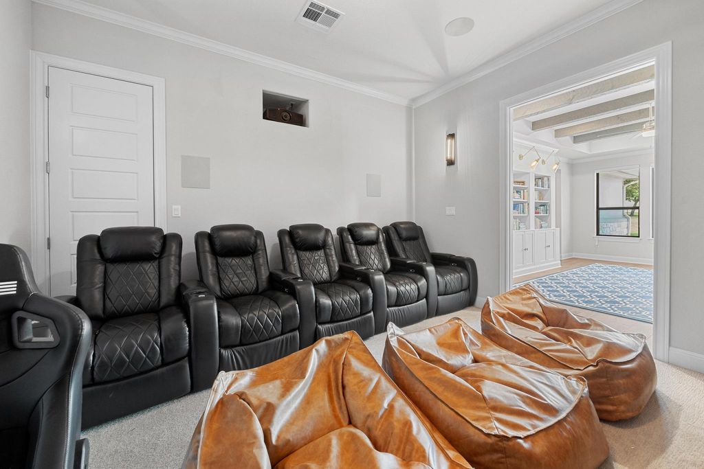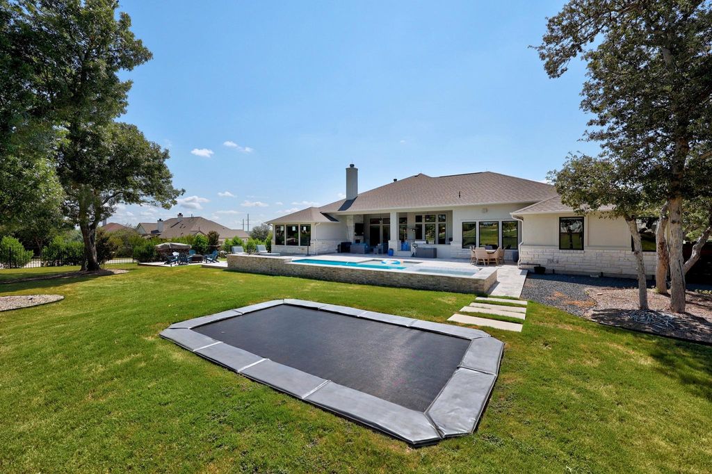 Call Joel = 512-264-4160***This sprawling single-story estate in the gated community of Grand Mesa at Crystal Falls offers 4,200+ sq/ft of custom design on 1.33 acres. Built in 2020 by the esteemed Giddens Homes, the Avalon plan combines modern luxury with everyday comfort, featuring five bedrooms, five and a half baths, and a rare oversized five-car garage. The heart of the home is a chef's kitchen with JennAir Pro appliances, quartz counters, brass accents, and a massive island that opens to a family room with soaring wood-beamed ceilings and a stone fireplace. Additional spaces include a game room with a built-in bar, built-in bookcases, and a dedicated media room, making this home ideal for entertaining or relaxing with the family. The private primary suite offers backyard views and a spa-like bath with dual marble vanities, soaking tub, oversized walk-in shower, and a custom California Closets system. Designer finishes and motorized shades add sophistication throughout. Outside, the resort-inspired backyard is a true showpiece with a pool, spa, tanning ledge, fire wall, fire pit patio, outdoor kitchen, and covered living area framed by lush landscaping - and with the built-in automated pest control misting system throughout the entire backyard, you'll be able to enjoy the outdoors without distraction. With its smart features, premium build quality, built-in audio throughout, and unmatched indoor-outdoor lifestyle, this property stands out as one of Grand Mesa's finest.