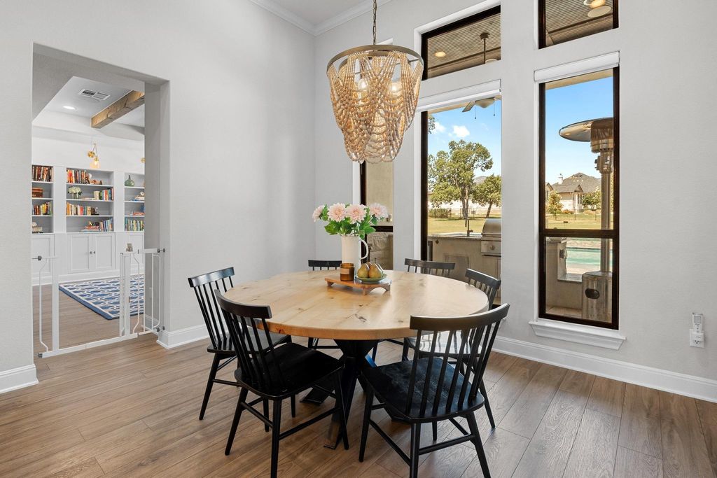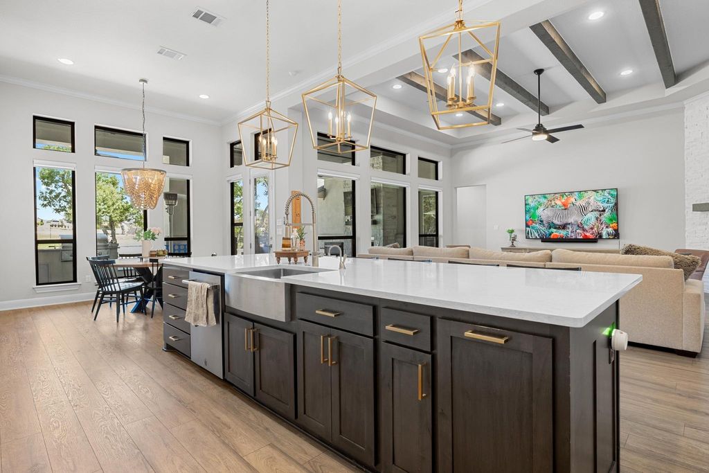 | INTERIOR | Bar, Beamed Ceilings, Ceiling Fan(s), Crown Molding, Double Vanity, Dry Bar, Entrance Foyer, Granite Counters, High Ceilings, Kitchen Island, Master Downstairs, Open Floorplan, Pantry, Soaking Tub, Walk-In Closet(s), Wired for Sound |