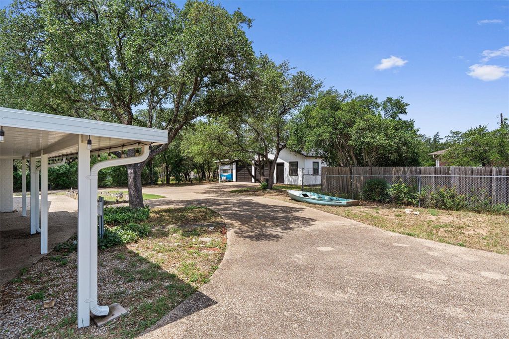 Spacious Multi-Generational Home in Lago Vista! With over 3,000 sq ft of living space, this unique property offers room for everyone"”with 5 bedrooms, 4 full bathrooms, 2 living areas, and 2 dining spaces. Perfect for multi-generational living, the original attached garage has been thoughtfully converted into a private guest suite"”currently Gram's cozy retreat"”with its own full bath. There's also a separate apartment located in the detached garage (not included in the listed square footage), offering even more flexibility. You'll love the vintage charm throughout, including arched doorways, a sunken formal living room, two classic brick fireplaces, and a stunning arched brick cooking nook in the kitchen"”true Mid-Century character that's hard to find in Lago Vista. The oversized backyard is private and perfect for entertaining, and the home sits on two combined lots with access from both Lakefront Dr and Rimrock Ct. The detached 3-car garage and multiple driveways offer plenty of parking for family and guests. Just a short stroll or golf cart ride from Arrowhead Park and the Lago Vista Country Club Golf Course. Updates include: roof (2022), kitchen remodel (2023), and many others over the years. This is a rare find in Lago Vista"”don't miss it! Welcome to Lago Vista "” Lake Living at Its Best! Nestled on the north shore of Lake Travis, Lago Vista offers residents exclusive access to the lake through multiple waterfront parks and boat ramps. This vibrant community features 9 scenic parks, a clubhouse, pavilions, 2 swimming pools, sports courts, a fishing well, a campground, and more. Whether you're boating, swimming, or simply relaxing, Lago Vista lets you live like you're on vacation all year long.