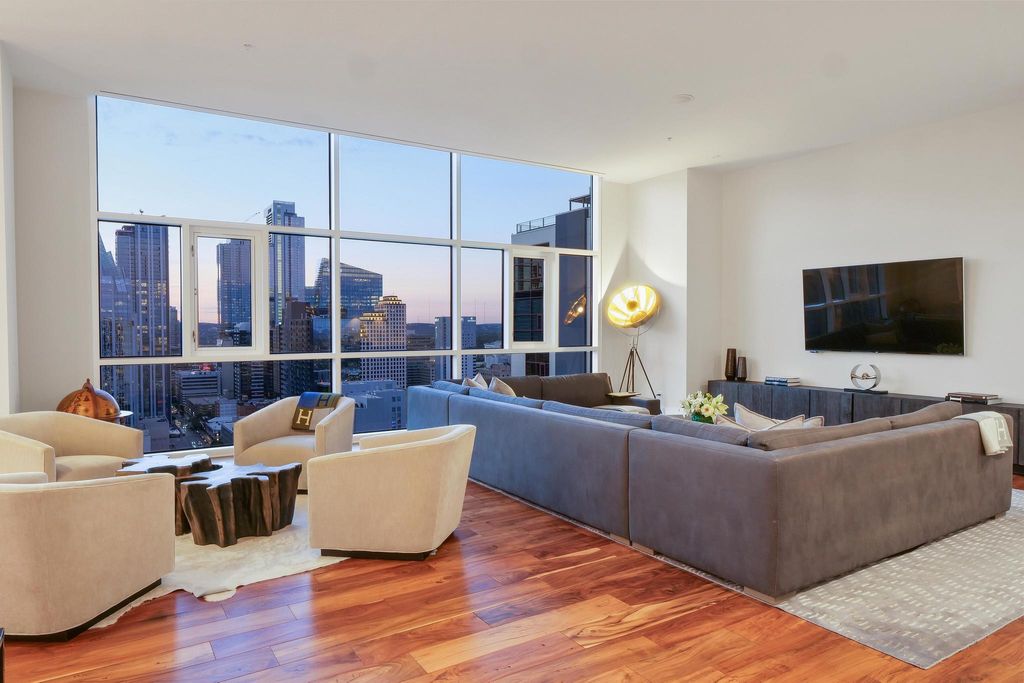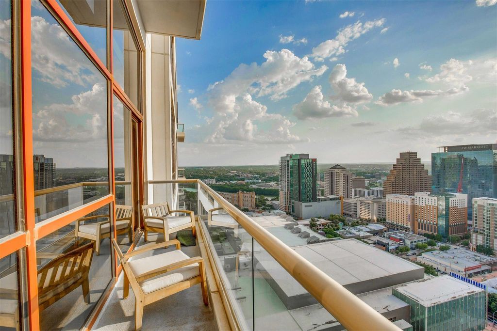 Luxury penthouse living on the 30th floor of 5FiftyFive in the heart of downtown Austin. One of the largest floor plans in the building, this expansive residence spans 3,638 square feet with soaring 12-foot ceilings, offering a rare sense of scale rarely found in high-rise living. Floor-to-ceiling windows wrap nearly every room, capturing sweeping panoramic views of downtown Austin, Lady Bird Lake, and the surrounding skyline. A coveted western exposure floods the home with natural light throughout the day and delivers breathtaking sunset views each evening"”among the most dramatic and unobstructed in the city. The thoughtfully designed layout features three spacious bedrooms, three full bathrooms, and a dedicated office, ideal for remote work, a private study, or creative space. The expansive primary suite offers serene city views, a generous walk-in closet, and a spa-inspired en-suite bath. Designed for elevated entertaining, the open-concept living and dining areas flow seamlessly into the chef's kitchen, appointed with Wolf and Sub-Zero appliances, including a 6-burner gas range, double ovens, and a full-size Sub-Zero refrigerator. A built-in wet bar with wine refrigerator, dedicated laundry room, and refined luxury finishes throughout enhance both function and sophistication. Residents enjoy a full-service lifestyle with concierge and doorman services, rooftop pool, resident lounge, state-of-the-art fitness center, Topgolf Swing Suite, and on-site F45 training. Ideally positioned near the ground-up redevelopment of East 6th Street and the new Austin Convention Center district, which will feature entertainment venues, dining destinations, and a live dance hall, this residence offers exceptional walkability and long-term appeal in one of downtown Austin's most transformative locations. A rare opportunity to own a premier penthouse combining iconic views, generous square footage, and true luxury living.