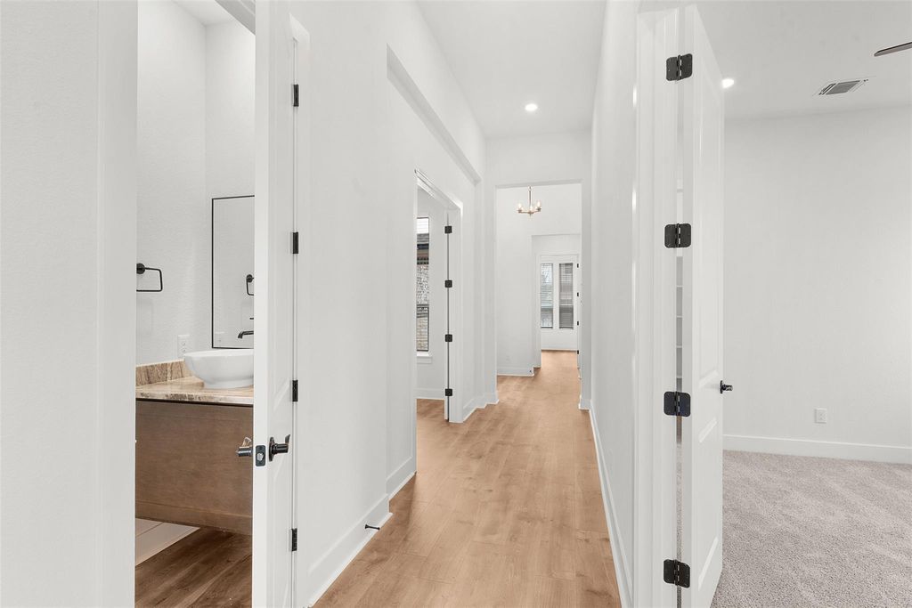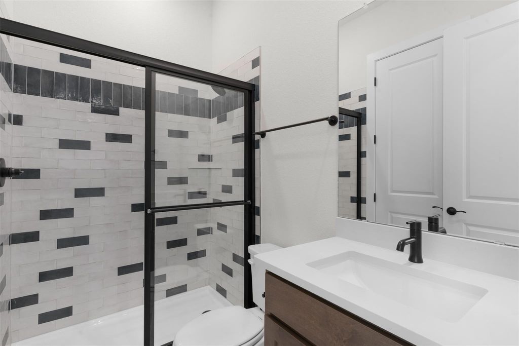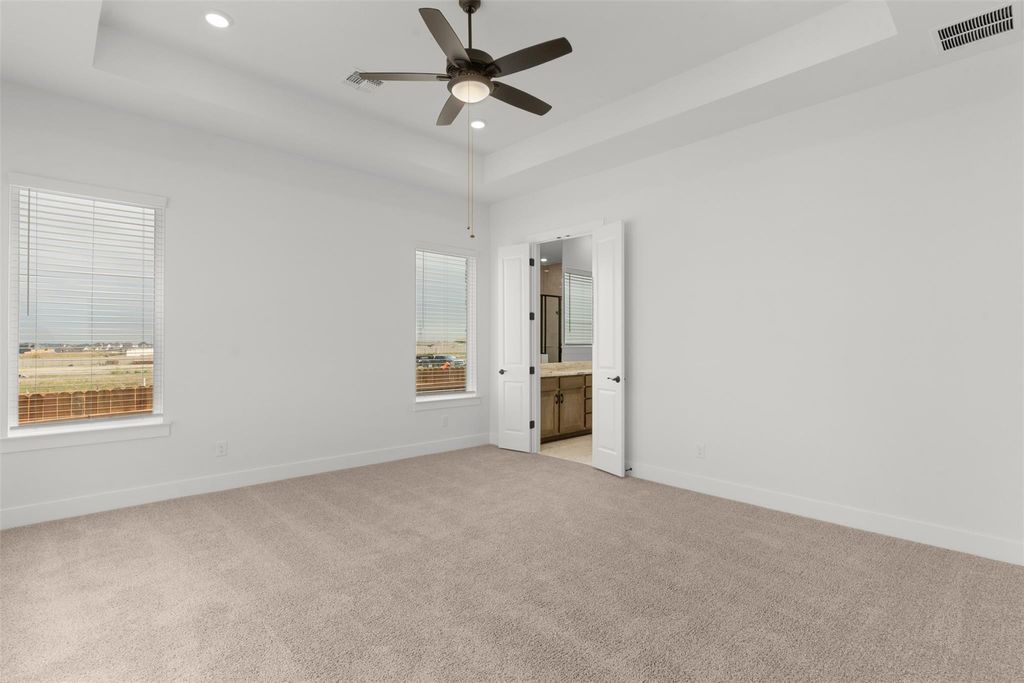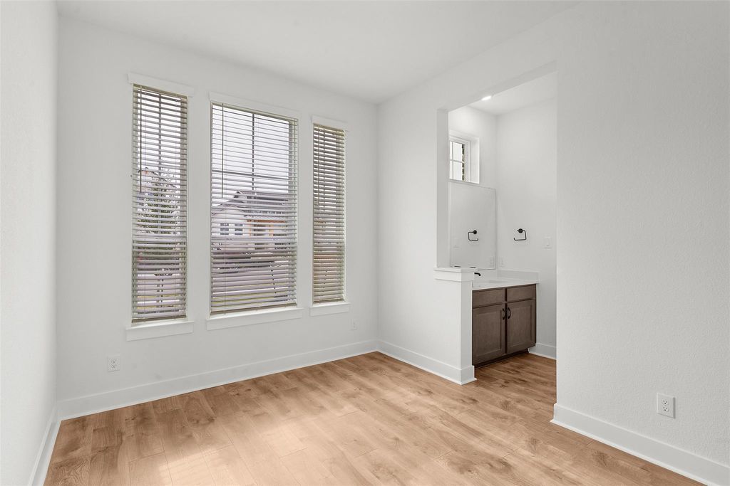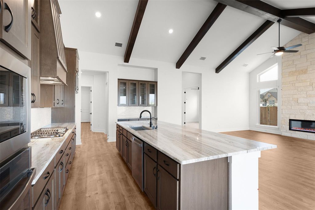 MOVE IN READY | 4 Beds | 3.5 Baths | Study | Game Room | Flex Room | 1-Story | 3,006 Sq Ft | 60' Lot | The Draco is a single-story stunner designed with space for everyone and a layout that feels both elevated and easy to live in. A charming courtyard porch entrance welcomes you in and leads to two front bedrooms, each with walk-in closets and a shared Jack-and-Jill bathroom. Down the hall, a dedicated study with French doors overlooks the courtyard, creating a bright and private workspace. Across from the study is a spacious game room with a storage closet, plus a half bath nearby for added convenience. At the heart of the home, the open family room shines with vaulted ceilings, stained beams, and tons of natural light. A 60" electric fireplace with a stone surround anchors the space and flows seamlessly into the kitchen, featuring a long center island, quartz countertops, built-in appliances, and a large walk-in pantry. The adjacent dining room keeps everything connected for everyday living and entertaining. Tucked privately in the back, the primary suite offers a tray ceiling, lots of windows, and double doors into an ensuite bath with dual vanities, soaking tub, walk-in shower, linen closet, and a large walk-in closet that connects directly to the utility room. Off the kitchen near the garage entry, you'll find a flex room, hall tree, and Bedroom 4 with a private bath and walk-in closet. Additional highlights include luxury vinyl plank flooring in common areas, designer tile in bathrooms, and upgraded double front doors. Move in ready, visit our model and ask about our current buyer incentives!