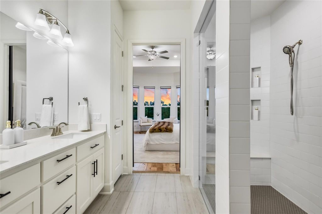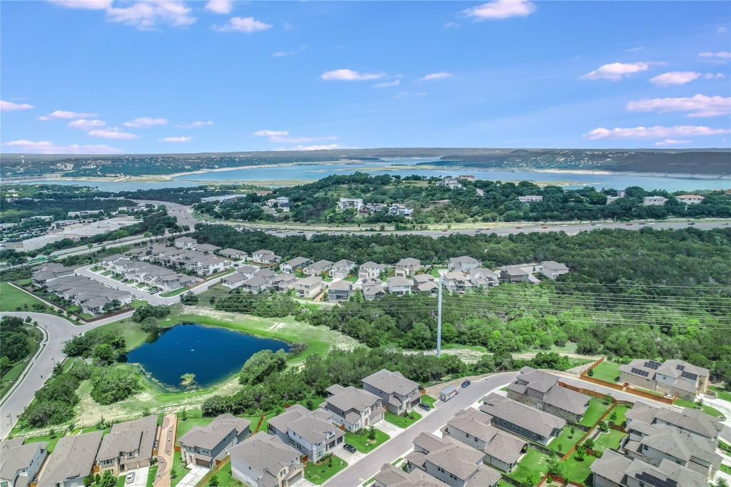 Located in the sought out community, The Retreat at Steiner Ranch, this 5-bedroom, 4-bathroom home offers a spacious 2,925 square feet of living space and a wonderful floor plan. The gourmet kitchen offers a large island and is open to both the family and dining areas, creating a perfect setting for entertaining and family gatherings. The primary bedroom features a charming bay window and a luxurious walk-in shower in the bathroom. A second bedroom w/ an ensuite bathroom, is located downstairs and can also serve as an office. Upstairs, you'll find three additional bedrooms, a large game room, and a balcony that provides sweeping panoramic views. All bedrooms and living areas offer wood flooring, while the game room and stairs offer upgraded carpet. The large backyard is perfect for entertaining and backs to a greenbelt and pond, offering a serene and picturesque setting. Additional upgrades include epoxy flooring in the garage, a water softener system, and reverse osmosis in the kitchen. This home combines luxury, comfort, and a functional layout for a modern lifestyle and is located in a wonderful neighborhood with great amenities.