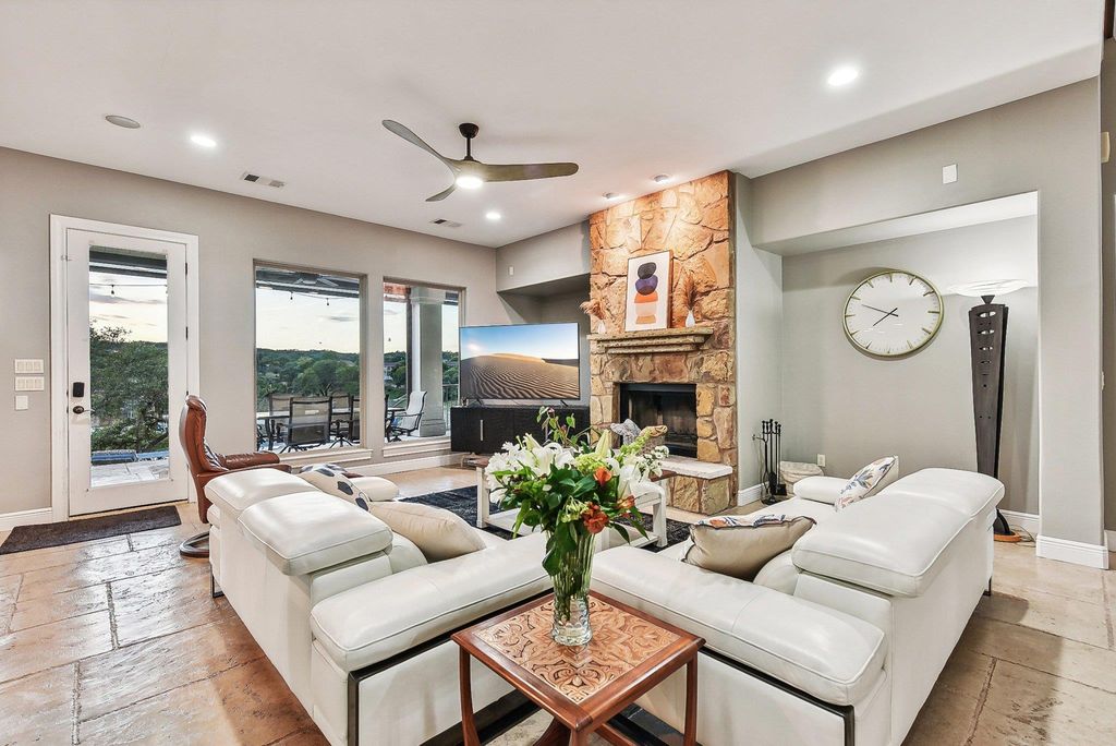 A new Listing Price for this Beautiful Hill Country Home with Modern Upgrades and Stunning Lake Views Discover your dream home nestled in the picturesque Hill Country with breathtaking views of Cat Creek Cove. This meticulously maintained residence, built in 2005, offers a harmonious blend of modern comforts and classic charm. Enjoy a luxurious lifestyle with state-of-the-art amenities, scenic surroundings, and convenient access to Lake Travis. Entertainment Ready, Outdoor living at its finest - Large 14 x 23 heated and chilled pool for year-round enjoyment with unparalleled lake and hilly country view. Chill in the Texas heat while taking in your breathtaking water views. - Expansive limestone patio area with a turfed backyard play area - Custom powered shades to stay cool in the heat of the evening sun - Enjoy being immersed in nature with an abundance of deer and wildlife. Amenities beyond compare -Boat Slip lease at Briarcliff Marina with 7,000 lb lift can convey. Don't Miss Out.