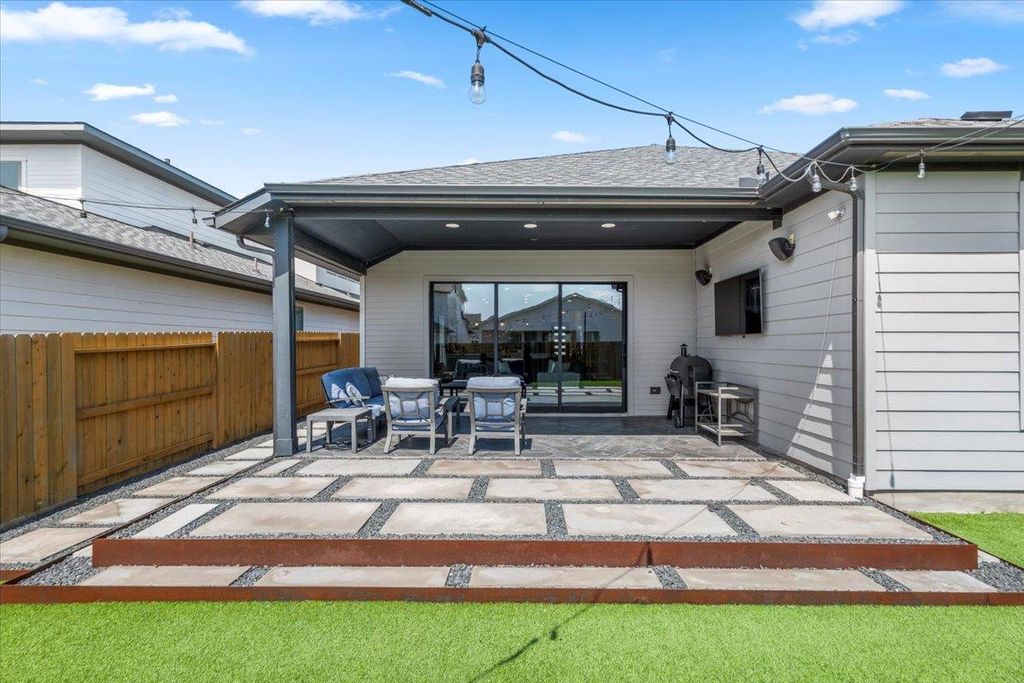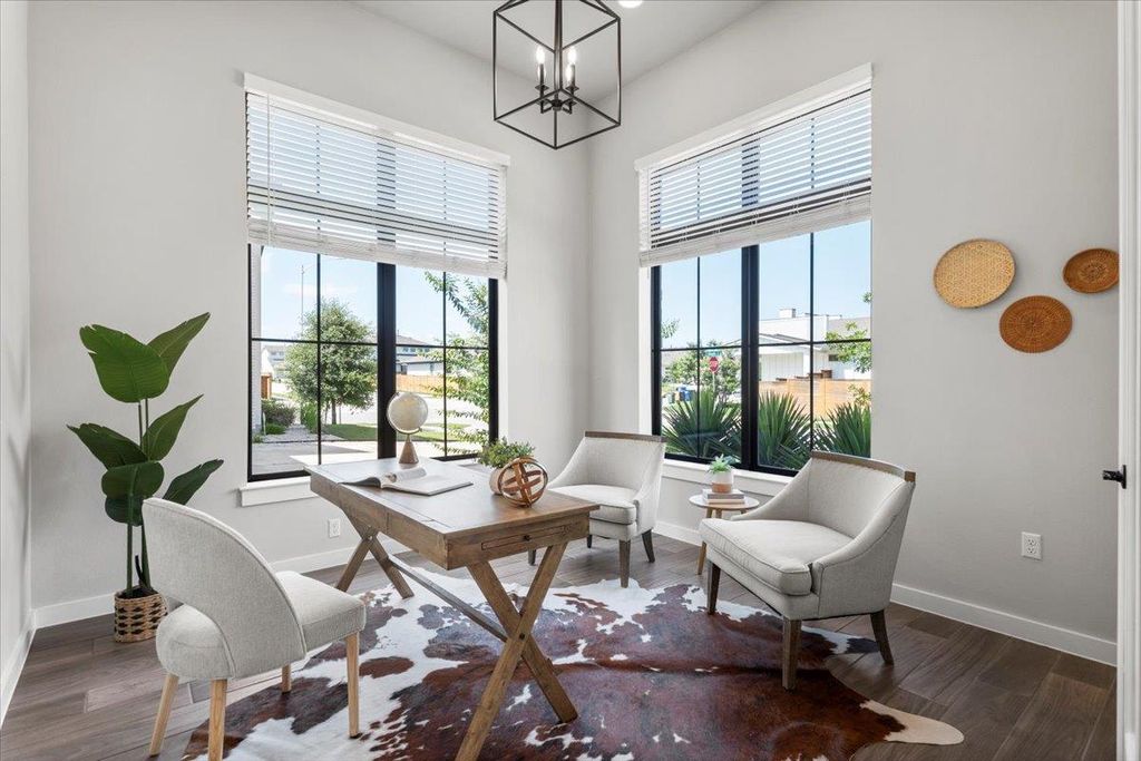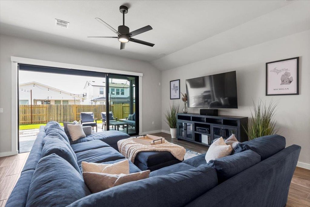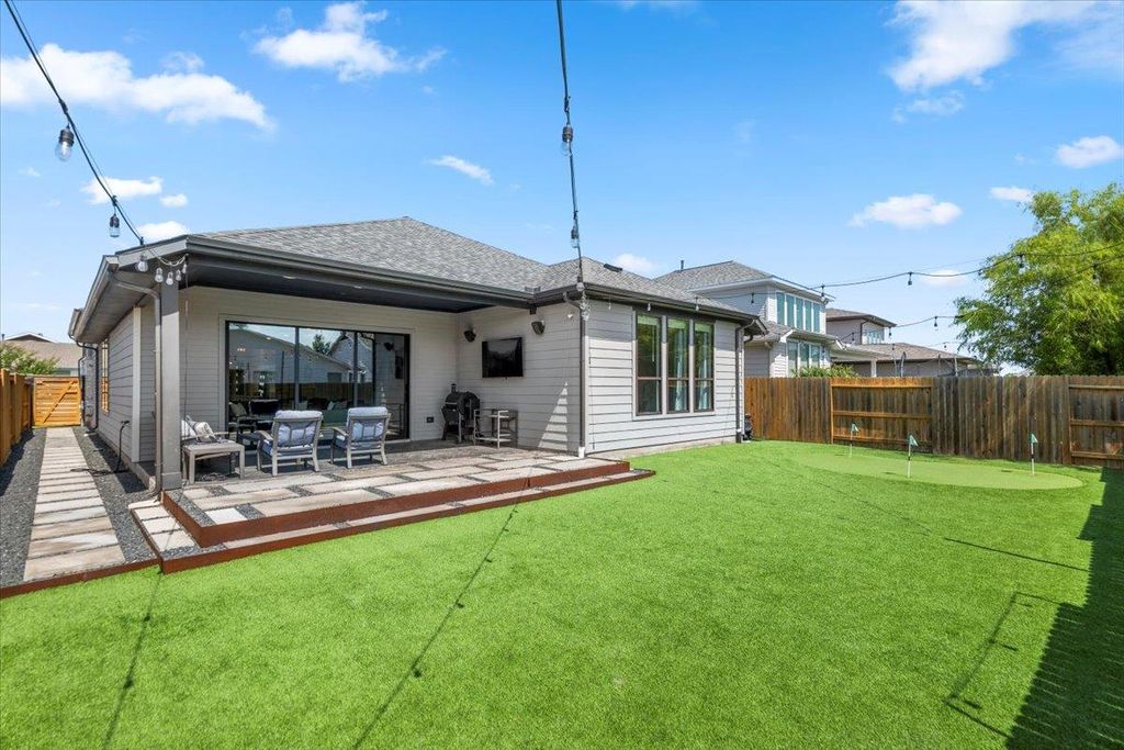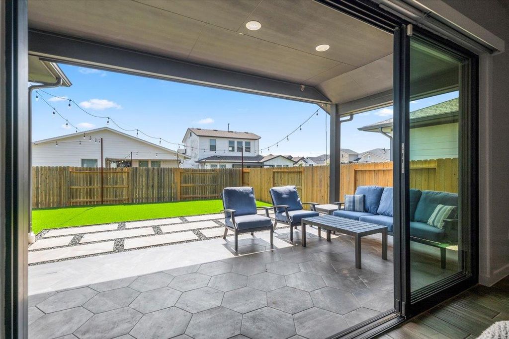 ***SELLER FINANCING AVAILABLE WITH 4.99% INTEREST RATE***Welcome to this stunning single-story gem nestled in the Skyline section of the highly sought-after Easton Park community! This beautifully designed 3-bedroom, separate office, and 2-full-bath home is a true standout, offering both style and function. Located just a short walk from the vibrant Skyline Park, you'll have easy access to playgrounds for all ages, a splash pad, art installations, and so much more! Step inside to thoughtful design upgrades throughout. The entryway features charming shiplap accents, one of the bedrooms is enhanced with a wainscoting wall treatment, & the built-in drop zone offers an organized solution for shoes, backpacks, and more. The open-concept living area is adorned with beautiful wood-look tile flooring, creating a seamless flow between spaces. Offering one of the largest kitchens in this product, the double island look is a real showstopper and offers tons of storage space. Both the kitchen backsplash and the primary bathroom flooring boast level 5 tile - the highest upgraded tile look that you can get in a home! The living room boasts a 3 panel sliding glass door that effortlessly connects the indoor space to the backyard, allowing for easy outdoor living & entertaining. Need privacy or to dim the lights? Make use of the remote-operated room-darkening shades on the sliding glass doors. You'll love the private home office with French doors and the spacious laundry room equipped with custom cabinetry for added storage and organization. Step outside to your private backyard retreat! The spacious covered patio is perfect for outdoor dining and lounging, while the low-maintenance turf ensures you'll have more time to enjoy the space. Plus, a putting green makes this yard a golfer's dream!
