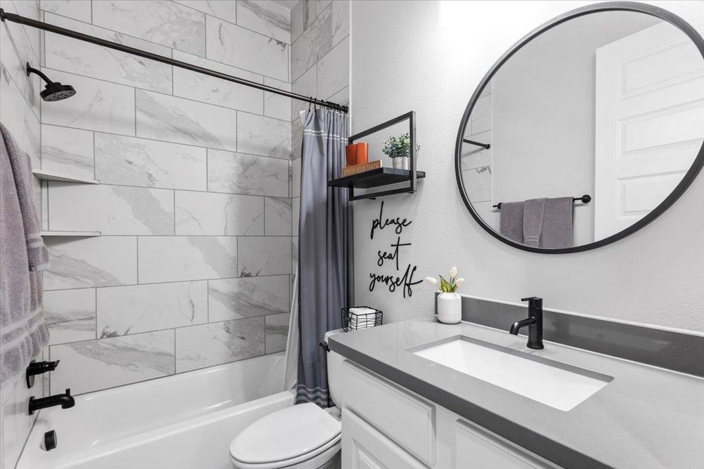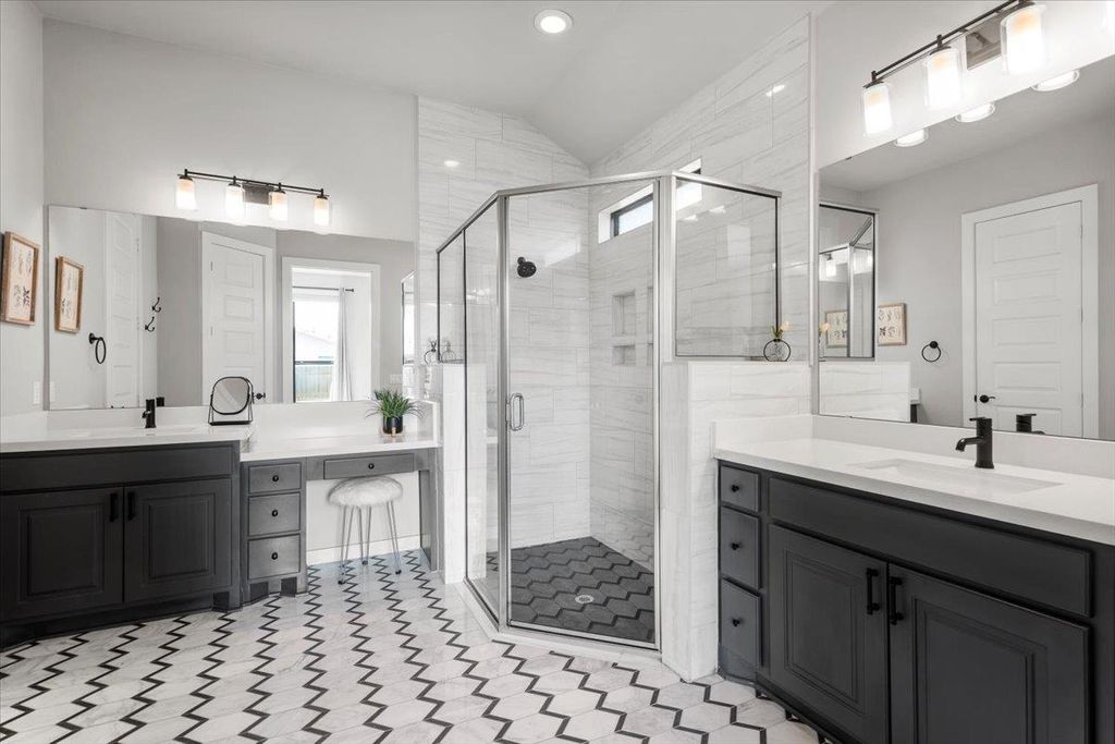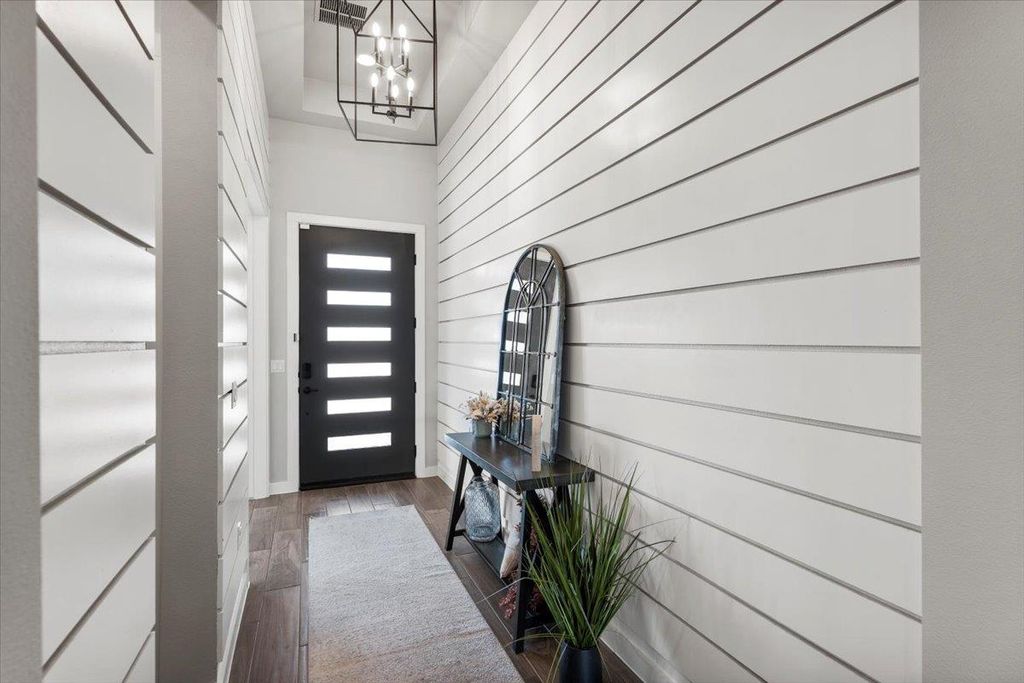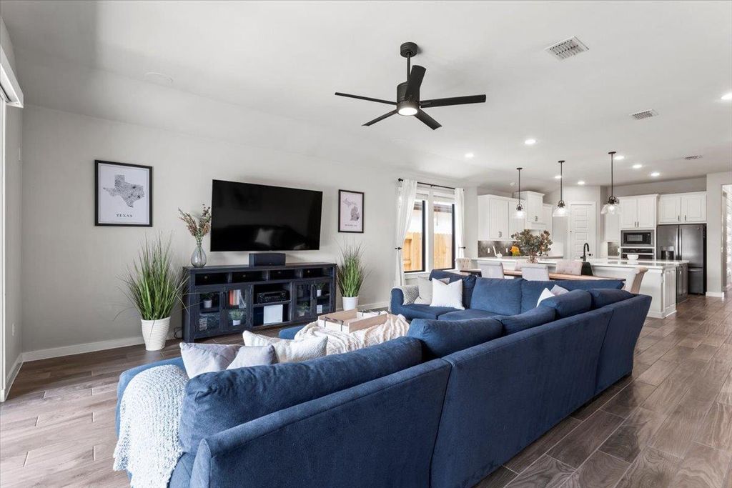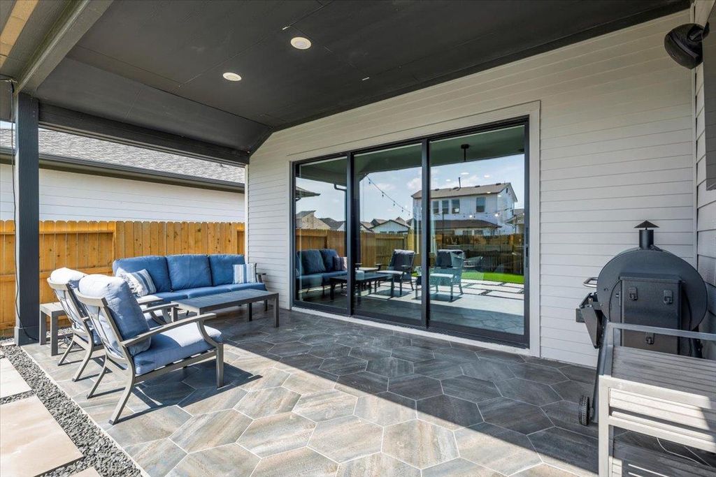 ***SELLER FINANCING AVAILABLE WITH 4.99% INTEREST RATE***Welcome to this stunning single-story gem nestled in the Skyline section of the highly sought-after Easton Park community! This beautifully designed 3-bedroom, separate office, and 2-full-bath home is a true standout, offering both style and function. Located just a short walk from the vibrant Skyline Park, you'll have easy access to playgrounds for all ages, a splash pad, art installations, and so much more! Step inside to thoughtful design upgrades throughout. The entryway features charming shiplap accents, one of the bedrooms is enhanced with a wainscoting wall treatment, & the built-in drop zone offers an organized solution for shoes, backpacks, and more. The open-concept living area is adorned with beautiful wood-look tile flooring, creating a seamless flow between spaces. Offering one of the largest kitchens in this product, the double island look is a real showstopper and offers tons of storage space. Both the kitchen backsplash and the primary bathroom flooring boast level 5 tile - the highest upgraded tile look that you can get in a home! The living room boasts a 3 panel sliding glass door that effortlessly connects the indoor space to the backyard, allowing for easy outdoor living & entertaining. Need privacy or to dim the lights? Make use of the remote-operated room-darkening shades on the sliding glass doors. You'll love the private home office with French doors and the spacious laundry room equipped with custom cabinetry for added storage and organization. Step outside to your private backyard retreat! The spacious covered patio is perfect for outdoor dining and lounging, while the low-maintenance turf ensures you'll have more time to enjoy the space. Plus, a putting green makes this yard a golfer's dream!