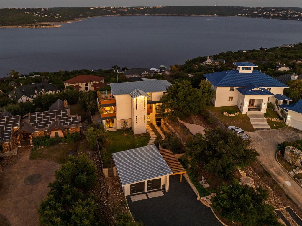 Rare opportunity to experience the perfect balance of architectural sophistication & luxury Hill Country serenity. One-of-a-kind estate nestled atop McCormick Mountain in an exclusive 5-home enclave-captures 300' of unobstructed Lake Travis views. 1.102 private acres, blending privacy, accessibility & the finest in elevated Austin living"”minutes from the city's vibrant core & top-rated Lake Travis ISD. Framed by gorgeous gardens, tranquil terraces & a breezeway that invites outdoor living, every inch has been artfully designed. Wrapped in floor-to-ceiling glass, revealing sweeping panoramic views & Hill Country vistas from every angle. Completed 2/25, the 4384sf of refined design & meticulous attention to detail in the chef's kitchen with custom alder cabinetry, commercial-grade appliances & a stunning pecan & quartz island"”complemented by a side prep kitchen with addt'l oven, wine fridge & abundant storage in the walk-in pantry. Main-level Owner's Suite-a private sanctuary featuring soaring ceilings, expansive windows, walk-out patio & a spa-inspired ensuite with marble walk-in shower, custom wardrobe closet & integrated laundry. Take the elevator up to 2 spacious secondary suites with vaulted ceilings & a light-filled multi-purpose room"”ideal as a home office/game room or creative studio"”with direct access to a private upper terrace overlooking Lake Travis. The outdoor living is equally impressive & unfolds like a private resort. A flat front yard leads to a stunning breezeway"”equipped with fans, built-in heaters, integrated sound system & fire table for year-round entertaining, shimmering pool & sundeck-framed by gardens & expansive lake views. Lower level has a tranquil Zen Studio, illuminated wet/dry sauna, access to both pool & garden & a dedicated Exercise Room with its own entrance. Elevated daily living*Seamless transitions* 1400+sf of patios & decks, ample storage & a layout that celebrates the home's breathtaking 300-degree vistas. Built to inspire.