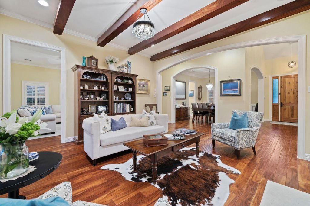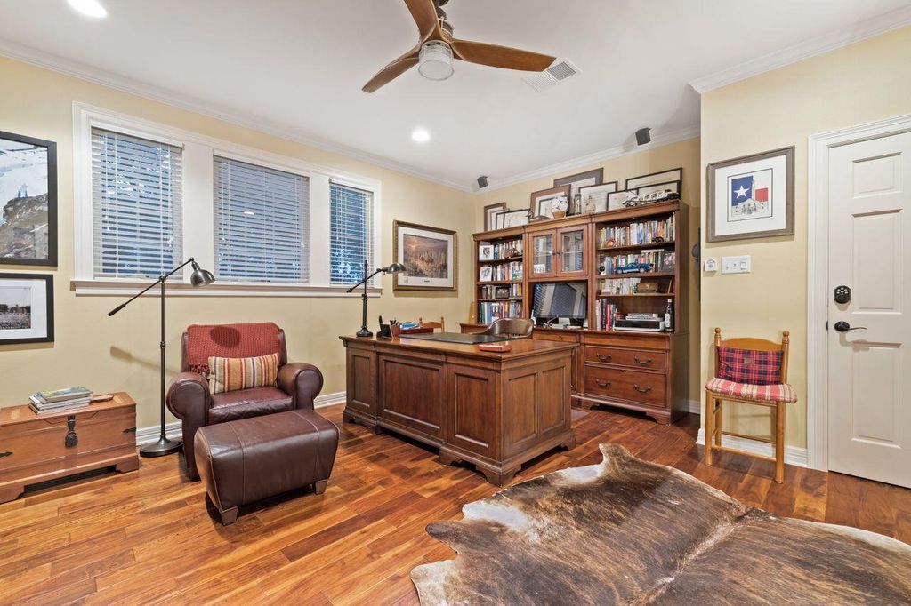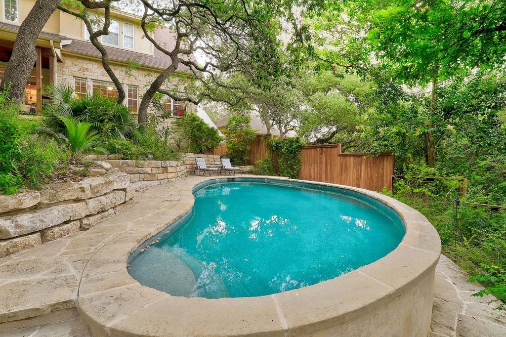 Nestled in Westlake's prestigious Treemont neighborhood, this exceptional residence offers an extraordinary blend of space, privacy, and versatility. Situated on a secluded .52-acre lot backing to a natural greenbelt with Eanes Creek, this 5-bedroom, 4.5-bath home provides a rare combination of tranquil seclusion and prime location just minutes from downtown Austin. The masterfully designed floor plan features four distinct living areas: a formal living room and family room on the main level, plus an upstairs study and two versatile flex/game spaces. The main level showcases a luxurious primary suite retreat with a conveniently tucked-away office nook, complemented by generous living and dining spaces flooded with natural light. Upstairs, four additional bedrooms create the perfect balance of togetherness and privacy. A unique highlight includes one upstairs bedroom with adjoining flex space that can be accessed either from within the home or through a separate private entrance, adding exceptional versatility to the home's design. Summer entertaining reaches new heights in the spectacular backyard oasis, where a sparkling pool invites relaxation against the backdrop of mature trees and natural landscape. The property's orientation creates an exceptional sense of seclusion rarely found so close to urban amenities. The three-car garage provides abundant storage for vehicles and outdoor equipment. Families will appreciate the renowned Eanes ISD schools, consistently ranked among Texas' finest. This exceptional property offers a truly adaptable living experience, designed to evolve seamlessly with your family through every stage of life while maintaining that perfect balance of neighborhood charm and sophisticated living. Experience the unmatched combination of serene privacy and urban accessibility that defines luxury living in Westlake.