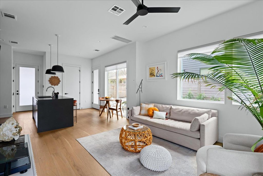 Designed by SlicDesign, this meticulously crafted home in the coveted Galindo neighborhood offers a flawless, lock-and-leave lifestyle. Two bedrooms"”each with an en suite bath"”plus a convenient half bath downstairs form a floor plan that lives exactly the way you need it to. Modern upgrades abound, including a Tesla charger, security system, keyless entry, video doorbell, and designer window coverings. Even the furniture is negotiable for those seeking a fully turn-key, move-in ready home. Step inside to find seven-inch white oak floors, soaring ceilings, and abundant natural light. The sleek chef's kitchen, anchored by a waterfall island, Bosch appliances, and matte quartz countertops, flows seamlessly into open living and dining areas that extend to two separate patios. Outside, a fully fenced yard, dedicated irrigation system, and extra storage deliver maximum enjoyment with minimal upkeep"”perfect for everything from morning coffee to weekend barbecues. Best of all, this luxury retreat is offered with exceptionally low taxes. Ideally situated near South Lamar, South 1st, and South Congress"”and just blocks from top dog parks and the city's largest tennis courts at Austin Rec Center"”it promises unmatched convenience without sacrificing privacy. Schedule a showing today and experience a modern home that truly leaves nothing to be desired.