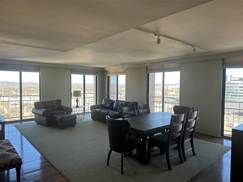Fantastic condo on the 19th floor with views to the north towards the UT tower and west to the hills of Austin. One large bedroom, one full bathroom with tub/shower, gallery-type kitchen with doors, large open living/dining area with sliding glass doors to exterior balconies. Assigned parking stall in the Westgate Condo parking garage. Great downtown location across the street from the Capitol. Rooftop swimming pool and fitness center. Monthly HOA rate includes: base HOA fees, electricity, a/c, heat, water, and trash service.