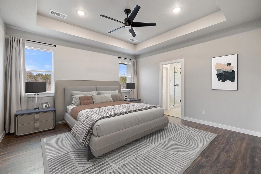 Welcome to your dream home nestled in the breathtaking Hill Country! This modern residence features 3 spacious bedrooms and 2.5 stylish bathrooms within its generous 1,842 square feet of thoughtfully designed living space. As you step inside, you'll be greeted by a warm and inviting atmosphere. The heart of the home is undoubtedly the kitchen, a chef's paradise equipped with exquisite quartz countertops that provide both functionality and beauty. The shaker-style cabinets offer ample storage, while the convenient pot filler adds a touch of luxury and practicality for cooking enthusiasts. With a full appliance package included, this kitchen is ready for all your culinary adventures. Adjacent to the kitchen, the large walk-in pantry ensures you'll have plenty of space to keep all your essentials organized and easily accessible. The open layout seamlessly connects the kitchen to the living room, creating a perfect environment for entertaining family and friends or simply relaxing after a long day. Step outside to discover your private outdoor oasis. The fenced yard provides a secure space for children and pets to play, while the well-appointed outdoor kitchen is ideal for hosting summer barbecues and enjoying alfresco dining under the beautiful Texas sky. Whether you're sipping coffee in the morning or unwinding in the evening, this outdoor space is sure to become a favorite retreat. Located just a stone's throw away from the stunning Lake Travis, this home offers not only modern luxury but also the opportunity to embrace the outdoor lifestyle that the Hill Country is known for. Enjoy boating, fishing, and hiking in the surrounding natural beauty, all while being part of a vibrant community. This exceptional property is a perfect blend of comfort, style, and convenience, making it a must-see for anyone looking to enjoy the best of Hill Country living. Don't miss your chance to make this beautiful house your home!