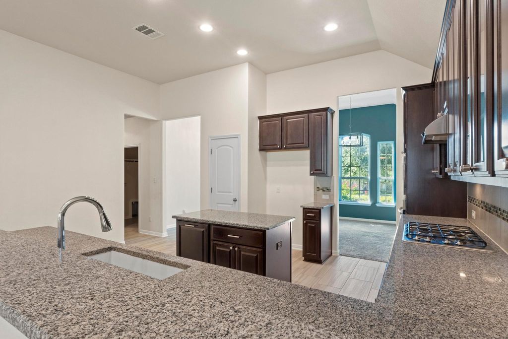 Stunning single-story home in the sought-after Travisso community! This beautifully maintained 3-bedroom, 2-bath residence offers 2,097 square feet of thoughtfully designed living space. The open-concept layout features a spacious granite kitchen with stainless steel appliances, a large center island, and plenty of cabinet storage "” perfect for everyday living and entertaining. The inviting living area is filled with natural light and flows seamlessly to the covered patio and expansive backyard that backs to an open park area, providing extra privacy and scenic views. The primary suite offers a relaxing retreat with a spa-like ensuite bath and generous walk-in closet. Additional highlights include a 2-car garage & modern finishes. Travisso offers an award-winning lifestyle centered around The Palazzo, a 9,200 sq ft amenity center with a resort-style pool, full gym, tennis courts, playscapes, trails, and a dedicated lifestyle director curating year-round events and activities. Even better, a second amenity center, The Forum, will include lap lanes, pickleball and basketball courts, yoga space, and additional community recreation options. Enjoy peaceful Hill Country living just minutes from shopping, dining, and top-rated Leander ISD schools.