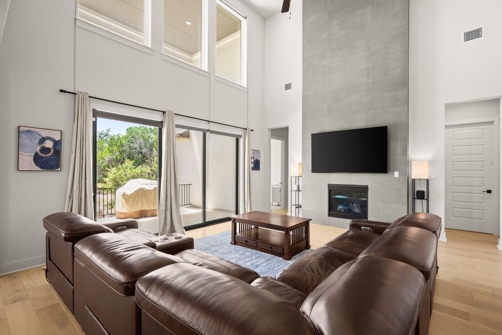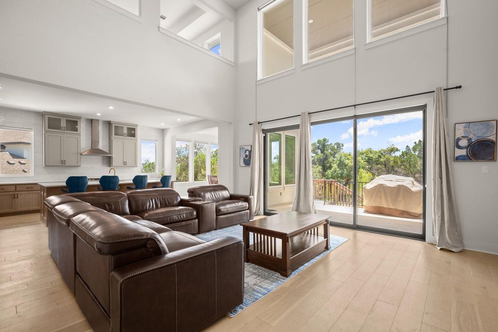 Built in 2022, this stunning home offers the perfect blend of modern luxury and Hill Country charm. Set on a quiet cul-de-sac and nestled on a heavily treed 1/2 acre lot, the property provides ultimate privacy and beautiful natural views. Inside, the thoughtful layout includes four spacious bedrooms, four and a half bathrooms, a dedicated home office, and a large game room"”offering both functionality and comfort across 3,837 square feet (per TCAD). From the moment you step inside, you're greeted by high-end finishes including wide plank hardwood flooring, soaring ceilings, and modern horizontal stair railings. The heart of the home is the expansive great room, featuring oversized sliding glass doors and a stunning fireplace with tile extending to the ceiling. The kitchen is a dream for entertainers and chefs alike, with two-tone cabinetry, extended backsplash, added upper cabinets, and a custom vent hood that adds both style and sophistication. The luxurious primary suite offers a peaceful retreat with a freestanding soaking tub, a large walk-in shower, and dual vanities. Each secondary bedroom has access to its own full bath, making the home ideal for guests or a growing household. Outside, the private backyard is shaded by mature trees, creating a tranquil outdoor space perfect for relaxing or hosting. Additional highlights include a three-car garage, beautiful natural surroundings, and access to highly rated Lago Vista schools. This home is loaded with upgrades and showcases impeccable style throughout.