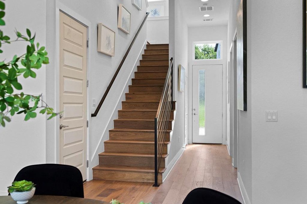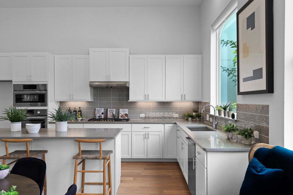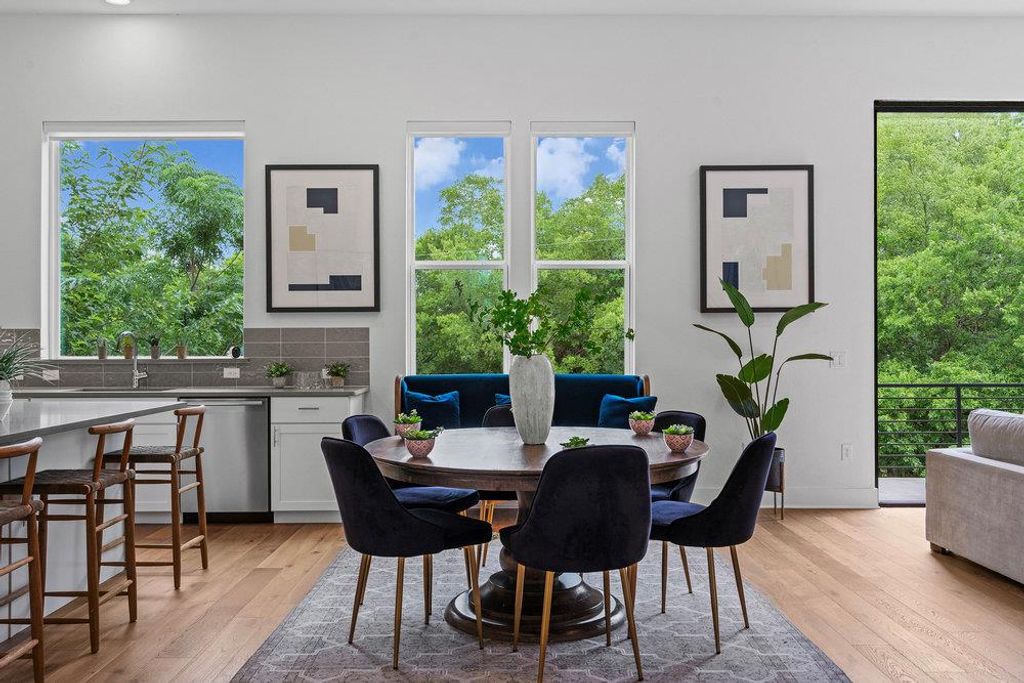 *Summer Closeout Promo- For a limited time get 3% of the sales price in flex cash! Utilize this by lowering an interest rate, closing costs, appliances and more! Call for more info!* STUNNING MODERN HOME ON A QUIET STREET SURROUNDED BY MATURE TREES! 4 BED/3 FULL BATH + GAMEROOM - GREAT LIVABILITY! New construction w/ warranty. Just completed. As soon as you open the front door you'll notice the big picture windows that invite you into a bright and airy great room, boasting 12 ft ceilings. The 10-foot-tall stackable sliding doors open to lush greenery and natural surroundings - creating an inviting backdrop for indoor-outdoor living. This home offers a lot of versatility...there's a bedroom on the main floor, which can also be used as a study. Upstairs, you'll find the owners retreat, and two additional bedrooms and a game room, providing ample space for family and guests. Throughout the home, beautiful wood flooring enhances the contemporary aesthetic. The spacious kitchen is equipped with high-end Bosch appliances, quartz countertops, a walk-in pantry, soft close drawers, undermounted cabinetry lighting, ideal for culinary enthusiasts. The primary suite features a luxurious bath with a glass enclosed walk-in shower, a deep freestanding soaking tub, separated vanities, and two walk-in closets, offering a perfect retreat. Intown Homes is committed to energy efficiency w/2x6 exterior walls, dual speed 16 SEER AC, tankless water heater, electric car charger + smart home tech. Full security system. Fenced in back yard with full irrigation, 2 car garage w/storage + lots of street parking. All of this is nestled in one of Austin's coolest communities, Agave, celebrated for its modern streetscapes, unique architecture, and friendly neighbors - just minutes from Downtown. Visit our model home at 6020 Sendero Hills Parkway to explore this home and others"”discover your new home today!