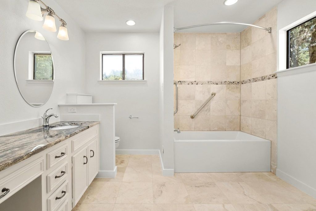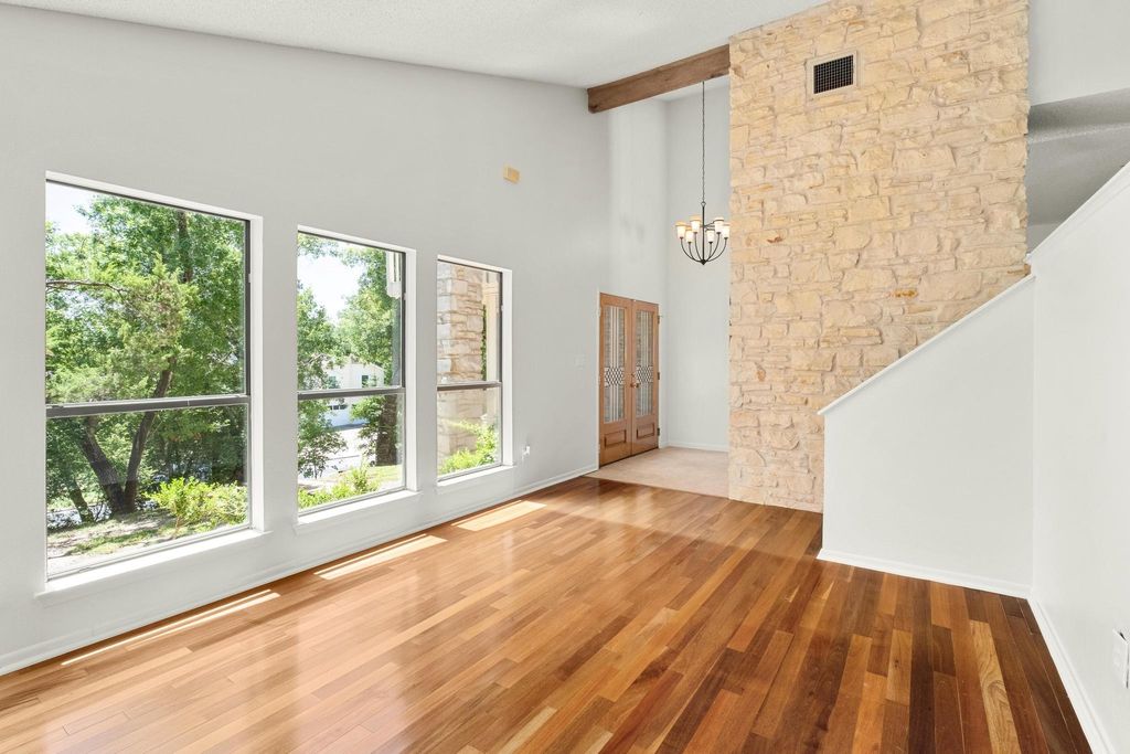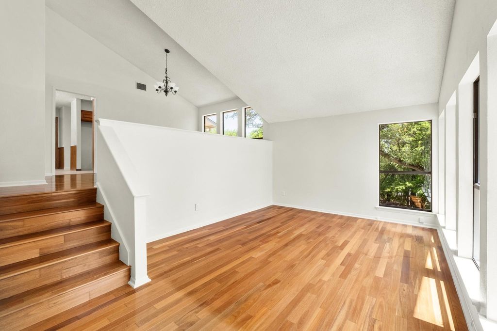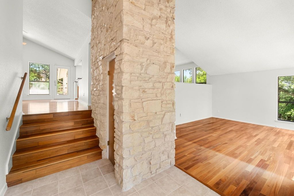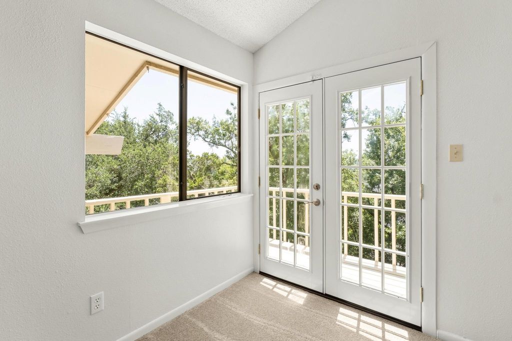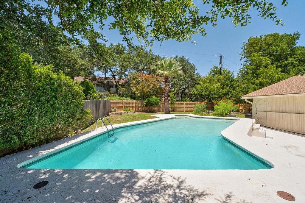 Don't miss this amazing opportunity to own a private hilltop gem in the Balcones Village Spicewood community. Nestled among mature trees with picturesque views of Northwest Austin's rolling hills, this unique property is ready for your personal touches. Situated on one of the largest lots in the neighborhood, complete with a pool to escape the summer heat. The unique split-level floor plan offers flexibility for daily living and is ideal for working from home. Enjoy abundant natural light and treetop views throughout. The primary suite with a private balcony is perfect for morning coffee and evening breezes. Recent updates include a roof (2023), carpet (2025), and interior paint (2025). Convenient access to 183, The Domain, North Austin tech corridor, and Q2 Stadium. Located in Round Rock ISD"”Canyon Vista Middle School and Westwood High School.