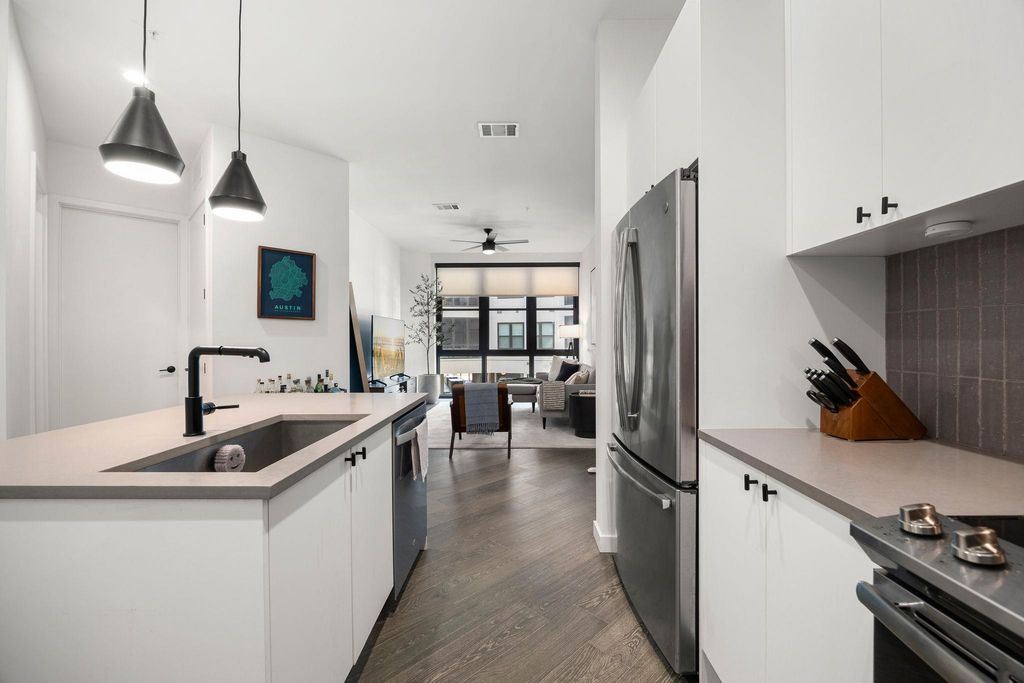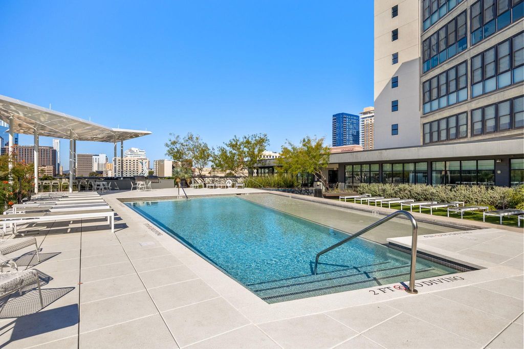 Experience contemporary Austin living in this stunning 1-bedroom, 1-bathroom condo perfectly situated in the heart of East Austin. Built in 2018, this second-floor residence blends modern design with urban convenience, offering a serene retreat just moments from downtown. Step inside to discover an open and airy floor plan with soaring ceilings, recessed lighting, and abundant natural light streaming through expansive windows. The sleek kitchen showcases modern European-style cabinetry, premium finishes, and ample counter space "” ideal for both cooking and entertaining. Wood and tile flooring flow throughout, complementing the home's clean, modern aesthetic. The spacious bathroom features a dual vanity and designer details, while a dedicated laundry closet accommodates stackable units for everyday ease. Enjoy elevated comfort and community at The Tyndall, where exceptional amenities extend your living space. Relax by the sparkling pool overlooking Austin's skyline, stay active in the state-of-the-art fitness center, or host friends at the outdoor kitchen and lounge areas. Residents also enjoy a landscaped courtyard, community kitchen, co-working and meeting spaces, and a dog run with a wash station "” all designed to enhance both work and play. A reserved parking space and private storage space adds convenience to your downtown lifestyle. Step outside and immerse yourself in one of Austin's most vibrant neighborhoods. Local favorites like Paperboy, Brew & Brew, Quickie Pickie, and Franklin BBQ are just a short stroll away, along with Whole Foods and Target for everyday essentials. Spend evenings at Vintage Bookstore & Wine Bar or Hillside Farmacy, or unwind with a walk through nearby Waterloo Park and the Town Lake trail system. This home is the perfect blend of style, location, and comfort "” your own peaceful slice of modern luxury in the heart of Austin.