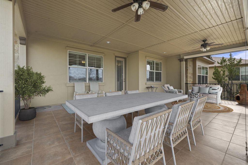 Don't miss this beautiful, well maintained 1 story home backing to a huge greenbelt area. Great views from inside and from the huge covered porch! This property boasts many upgrades including a custom, expanded garage with wonderful epoxy floor, super sized covered porch with sun/wind shades, gas hookup for Grill cooking and great views. This home also features plantation shutters on all windows. The large guest bedroom has high ceilings, ceiling fan and an en-suite bathroom. this property is located just steps from the community center with with clubhouse, swimming pools, lazy river, tennis, pickleball and hiking trails. Also enjoy the another great amenity with a bar/grill full service marina, another pool, gym and a entertainment pavilion!