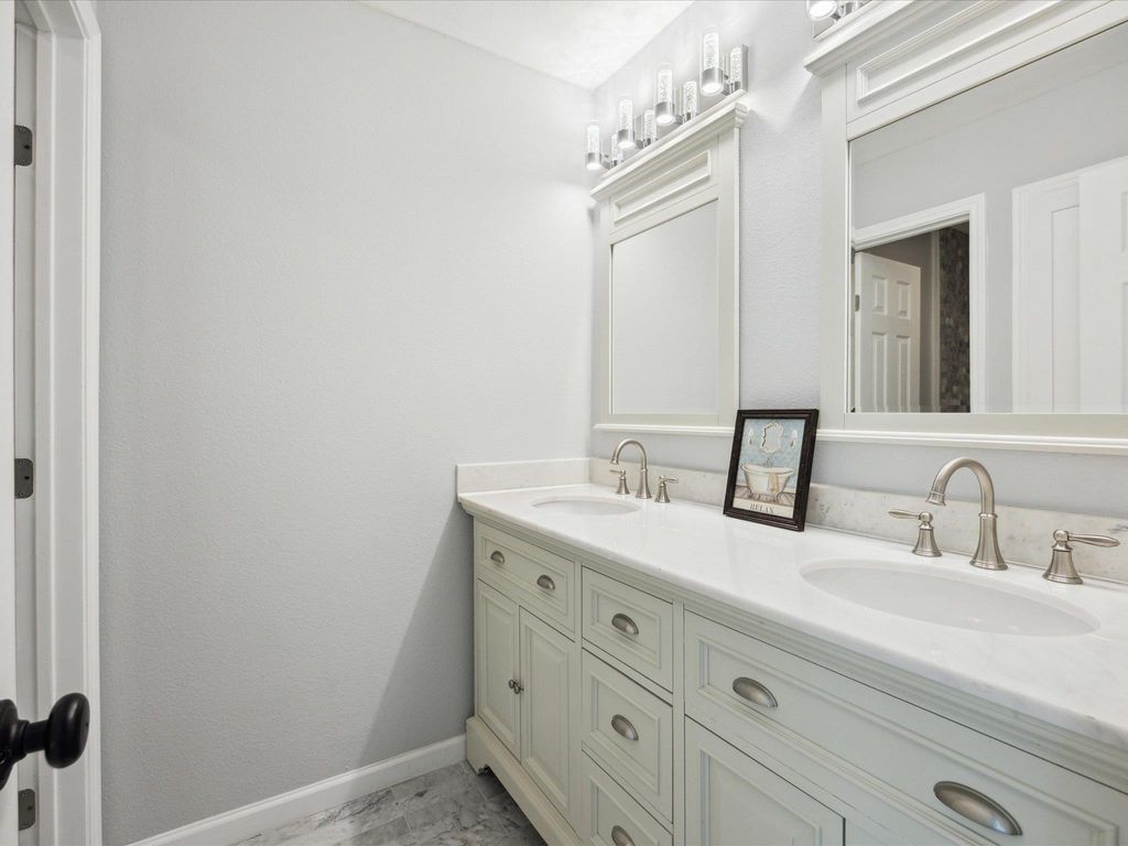 GORGEOUS one- story remodel that looks and feels like a new build- only better! Located in the highly sought after Vintage Hills neighborhood in northeast Austin. This home is both beautiful and functional with all major systems thoughtfully replaced for peace of mind. Updates include : Cast Iron pipes at previous stress points, roof, HVAC, hot water heater, double pained windows, gutters, interior/exterior doors, new circuit breaker box, new exterior A/C box, aluminum wiring throughout for outlets and switches, smoke detectors and garage wiring upgraded to meet 30 amp requirement, all new appliances inside. This home features a modern yet warm design palette, making decorating effortless. Step into the large open living room with vaulted ceilings, luxury vinyl plank flooring, cozy fireplace and wainscoting beautifully crafted on the walls in the living room illuminating abundant natural light.The living room flows seamlessly into the fully remodeled kitchen, breakfast nook and dining area - perfect for entertaining. The kitchen is a true show piece with quartz counter tops, chef's cooktop and stainless steel appliances. The primary suite is set apart from the secondary bathrooms and offers a spacious ensuite bathroom with double sinks and offers a granite tile shower. Walk- in closets included in each room. Beyond the home itself you will love the location : Close to the airport, Mueller, downtown,UT, Domain, major employers, shopping, restaurants, two HEB's, and major road. The Vintage Hills community is known for it's neighborhood potlucks, holiday parades, and friendly events. This home truly has it all! It's a must see!