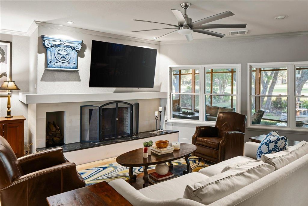 on the 16th FAIRWAY of Yaupon Golf Course, a totally remodeled one-story with gorgeous screened patio and outdoor pavilion overlooking the course. High-end remodel of kitchen, baths, wide plank white oak flooring throughout, windows, enormous utility room, garage with room for workshop, seperate guest entry. All a short distance to shopping, restaurants, and close to Lake Travis (now full!)