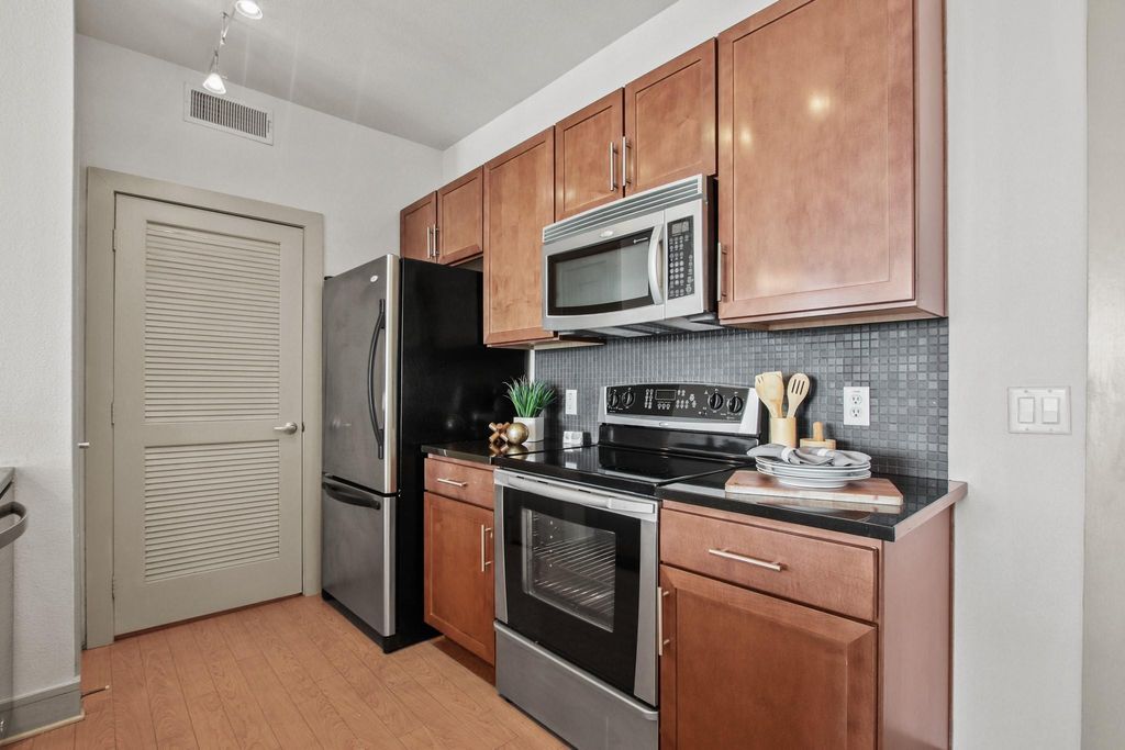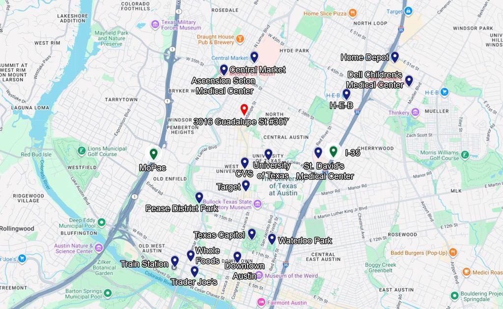 Looking for a modern home right at the vibrant heart of Austin? Then you've found the right place! Welcome to 3016 Guadalupe Street #307, a chic 757-sqft 1 bedroom, 1 bathroom condo within walking distance from UT / University of Texas Austin and 2 mi from downtown Austin. This charming residence has Floor-to-ceiling window that frame spectacular city views, infusing the space with natural light. The Open floorplan seamlessly connects the living spaces, and has gorgeous Woodlike-flooring & a sleek Ceiling fan. No carpet for easy maintenance! The modern kitchen has elegant Granite countertops, plenty of Cabinet and Counter space and is equipped with Stainless steel appliances. Nestled in a secure Gated community with garage parking, this unit also has an In-unit washer/dryer. Within the building, you can directly access multiple stores including The Burlap Bag, Smooshine, 30 Minute Hit, Relax Nails & Spa, Dirty Dog, Chase ATM, Via 313 Pizzeria, CaPhe.in Coffee, Cheba Hut "Toasted" Subs, and Wheatsville Coop. Enjoy unrivaled access to Austin's dynamic lifestyle. Make this your next home today!