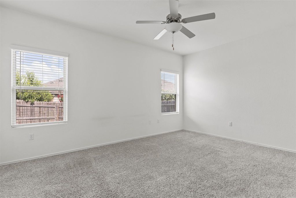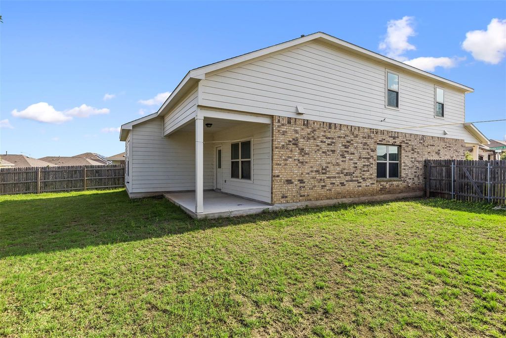 This corner-lot charmer on Monterosso Drive doesn't just check boxes"”it rewrites them. Sitting proud with clean lines and a stately brick façade, it opens up to a spacious layout designed for real living and easy entertaining. With 4 bedrooms, 2.5 baths, and dual living areas, every square foot works hard and lives large. The heart of the home beats in the open-concept kitchen, where deep espresso cabinets, quartz countertops, stainless steel appliances, and a wide island set the tone for everything from Tuesday tacos to weekend baking marathons. It flows effortlessly into the dining and living area"”anchored by natural light and backyard views"”so everyone's always part of the moment. Step outside and you've got a fully fenced backyard ready for summer grilling, evening hangs, or letting the dogs run free. Being on a corner lot means extra elbow room, extra privacy, and zero cramped vibes. The main bedroom sits on the first floor, separate from the other rooms, offering a calm, carpeted retreat with a dual-vanity en-suite, large soaking tub, and walk-in closet. Head upstairs and you'll find a second living area"”a flexible space to fit whatever life throws your way: movie nights, game tournaments, remote work, or all three. This one's in a sweet spot: easy access to 130 and close enough to downtown Austin to keep the culture close, without sacrificing peace and space. More light, more room, more function"”and the kind of layout that flexes as your lifestyle evolves. This home doesn't just fit your needs"”it makes room for your future.