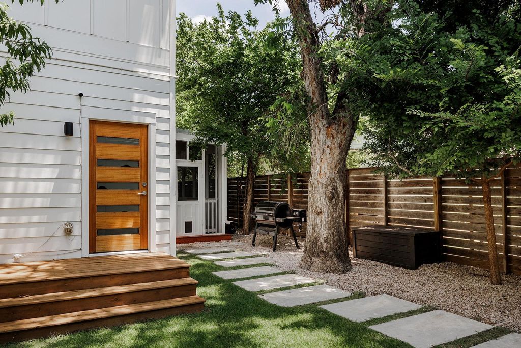 A true East Austin gem"”this rare property on one of Holly's most beloved blocks features two thoughtfully crafted homes on a single lot, each with private outdoor space and premium finish-outs. The main house offers 1,992 sq ft with 4beds/2.5baths, designed with both beauty and functionality in mind. The open kitchen, living, and dining area is the heart of the home, anchored by a striking island and book-matched walnut cabinetry"”both artistic and ideal for entertaining. Expansive windows and skylight flood the space with natural light, while a wraparound deck and a screened-in porch create seamless indoor-outdoor flow. The main-level primary suite opens to the back deck and feels like a retreat, with soaring ceilings and a spa-like bath featuring a soaking tub, rain shower, double vanity, and walk-in closet. Upstairs offers three additional bedrooms"”two with vaulted ceilings"”a bonus landing with built-ins, and a walk-in closet plumbed for a washer/dryer or potential third full bath. Throughout the home, curated details like Bole live-edge wood flooring and premium selections elevate the design with warmth and texture. The 812 sq ft guest house includes 2beds/2 baths, a full kitchen with island, walk-in pantry, washer/dryer, and private alley access with parking. Ideal for guests, STR income, or multigenerational living, it also features custom cabinetry, live-edge shelving, a covered patio, and lush landscaping. Over $120K in upgrades, including upgraded HVAC, irrigation, screened-in porch, custom shades, reverse osmosis systems, an insulated shed with electricity, and more. (See docs for full list.) This is a one-of-a-kind opportunity in one of Austin's most walkable, creative, and vibrant neighborhoods"”just steps from Lady Bird Lake and the best of East Side living.