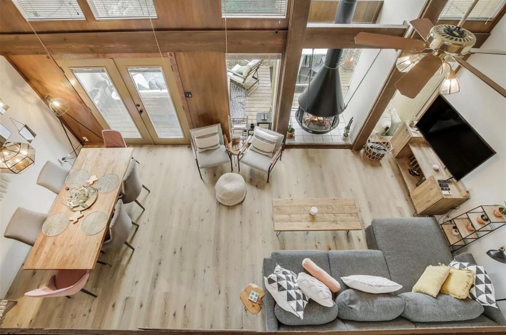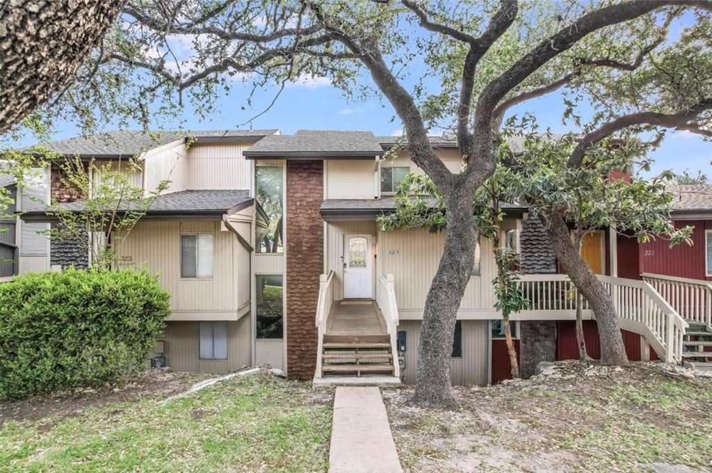 Views Views Views!!! This beautifully designed 3-story townhome frames sweeping Lake Travis views from two outdoor living spaces"”an upper balcony for sunrise coffee and an expansive rear deck for sunset gatherings. Inside, an open kitchen/living/dining area is anchored by original woodwork, soaring ceilings, and a dramatic suspended wood-burning fireplace. The flexible 3-bed/3-bath layout includes a loft bedroom with its own bath"”great for guests, an office, or a bunk room. Updates add ease and style: newer appliances, quartz countertops, and new flooring throughout. The rear deck features low-maintenance composite boards, and the supports beneath have been reinforced for peace of mind. Two mature oaks grace the front"”perfect spot for a hammock in the shade. Enjoy the Point Venture lifestyle within minutes: tennis, pickleball, 9-hole golf, disc golf, community pool, library, gym, and a 56-acre private beach park with boat launch, floating restaurant, and marina. Smart-home touches convey, including Hue lighting switches/bulbs plus Ring doorbell and alarm. All furnishings and appliances convey, making this an easy turnkey lake retreat, full-time home, or investment opportunity.