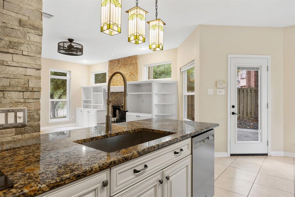 Homes rarely sit on a corner this good, but this one makes the most of every inch, starting with a backyard that feels like you've just wandered into your own Hill Country hideaway. Set in The Arbor at Great Hills, this former D.R. Horton model still carries that showcase presence from the street, elevated at the junction of Ironwood Cove and Spicebrush with mature oaks and native rock gardens framing the lot. Two xeriscaped beds wrap the exterior with agave, cactus, and Texas stone. Inside, the ceilings rise immediately, along with windows that pull in long Hill Country views. The main living spaces flow with warm tile underfoot, leading you toward a kitchen that was completely reworked; from its oversized island and granite countertops to upgraded appliances and white cabinetry built to suit the space. A dedicated office sits nearby, tucked just enough for focus but still connected. Upstairs, bamboo laminate brings a natural, easy feel to the bedrooms and game room. The reimagined primary suite stays true to the home's calm, retreat-like tone. Its ensuite bath adds a bit of transport with a tile-and-glass steam shower and wood-plank detailing inspired by island resorts. Step into the backyard and everything shifts into pure Austin outdoor living. The gunite pool and spa stretch across the back of the property, shaped to echo Bull Creek's limestone ledges. The pool deck wraps generously around the water, giving you space to sun, unwind, or host a crowd. A built-in grill makes poolside dinners simple, and the entire setting picks up a glow in the evenings when the oaks pull shadows across the water. Living in Great Hills ties it all together with its tree-lined streets, proximity to Great Hills Country Club, zoning for acclaimed schools, along with quick access to top shopping, dining and downtown. Here, you get the location, the layout, and a backyard that outshines anything else on the market.
