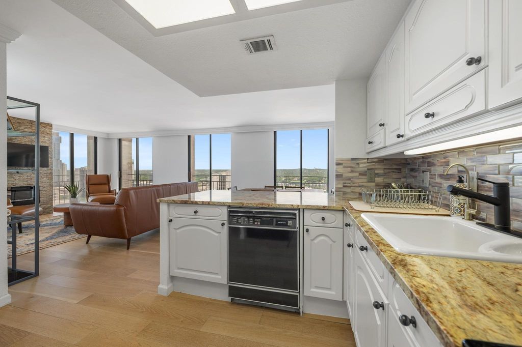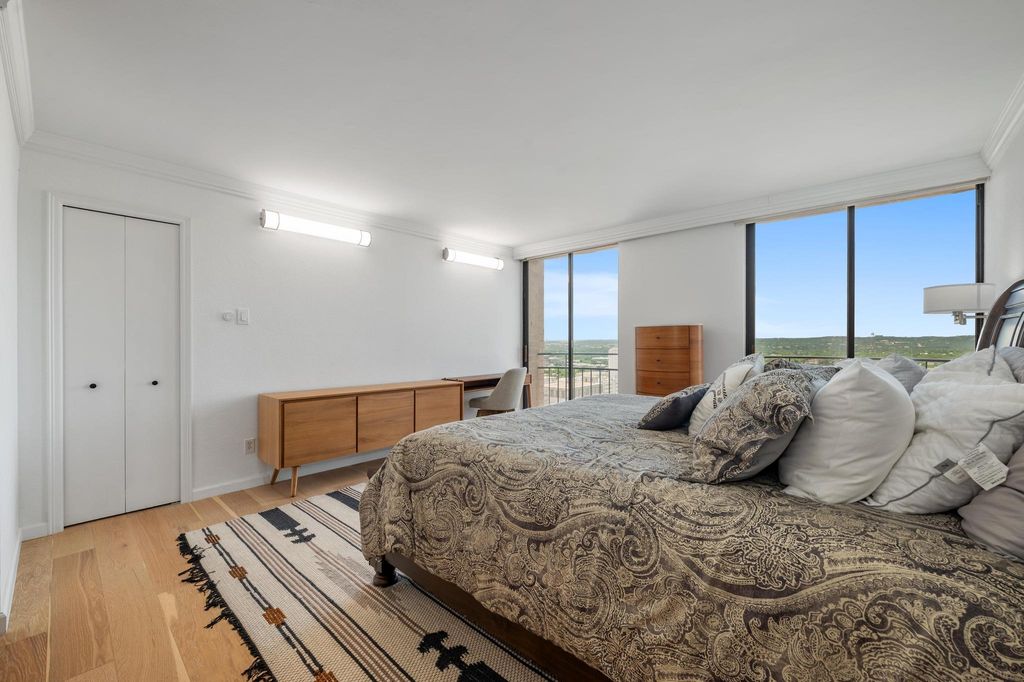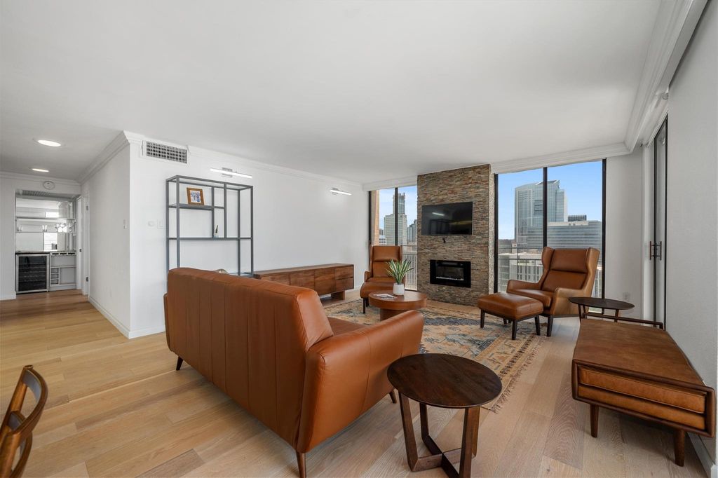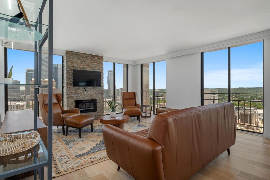 Own a piece of Austin history. Westgate Tower, Austin's first high-rise residence, rises beside the Texas Capitol as a protected mid-century modern landmark listed on the National Register of Historic Places. Its bold design and political past once made it a haven for artists, lobbyists, and lawmakers. This 20th-floor corner unit offers sweeping, unobstructed views of downtown, the Governor's Mansion, and Hill Country sunsets. Floor-to-ceiling glass, clean lines, and thoughtful updates combine timeless design with modern comfort"”wood floors, electric fireplace, automated blinds, custom cabinetry, granite counters, and premium appliances. The primary suite includes a marble-topped bath and walk-in closet. Located in the quieter part of downtown, Westgate offers rare serenity just steps from the Capitol, Shoal Creek Trail, Moody Amphitheater, UT campus, and Austin's cultural heart. Amenities include a rooftop pool, sky lounge, fitness center, sauna, 24/7 concierge, and HOA dues that cover all utilities"”including electricity, water, ad trash. Assigned parking included. Units this high and this well-positioned rarely hit the market. Live elevated"”surrounded by skyline and steeped in legacy.