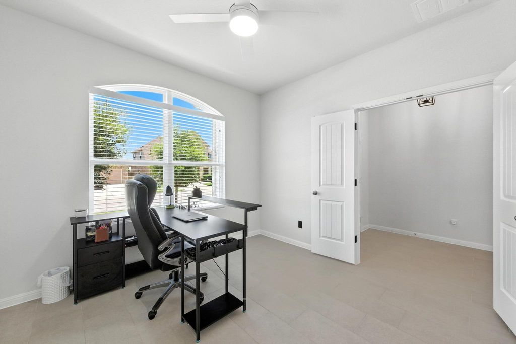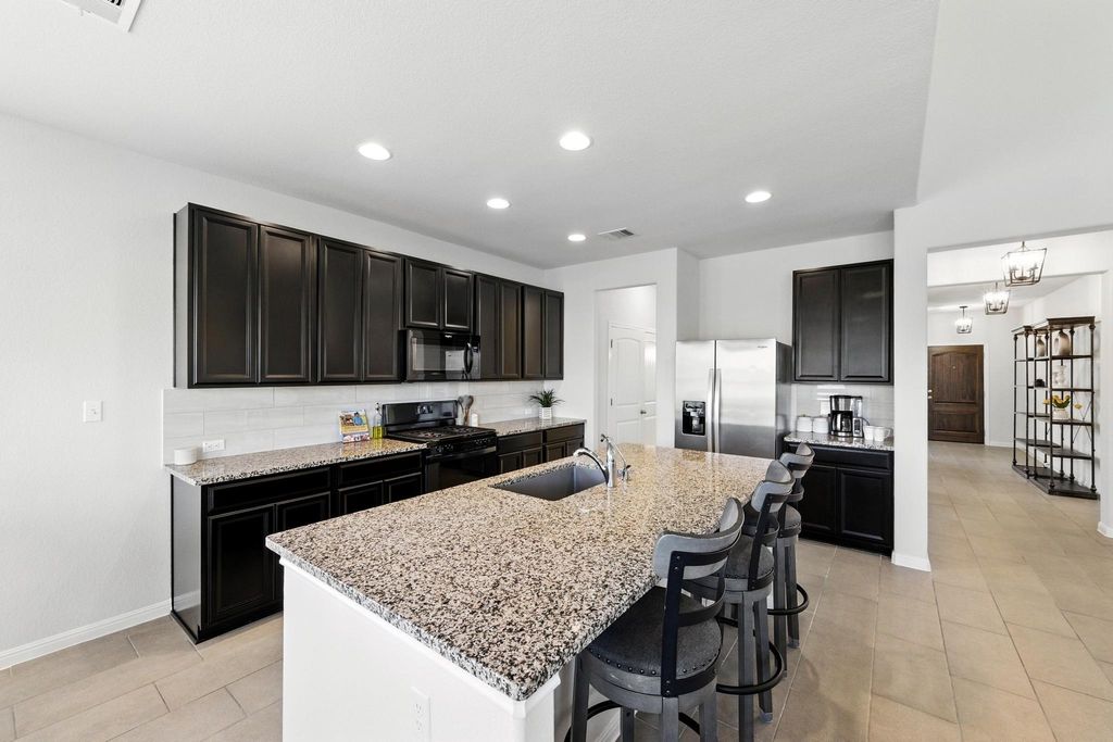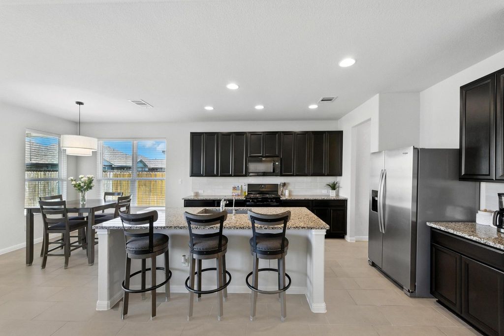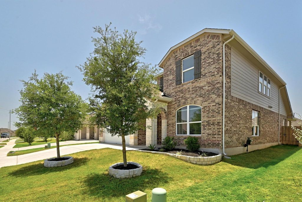 Nestled in the charming Lagos subdivision, this stunning Ashton Woods home boasts exceptional curb appeal with its elegant brick and stone exterior. Inside, an open-concept floor plan seamlessly connects the main living spaces, featuring four spacious bedrooms, three and a half well-appointed baths, a private office downstairs, and a generous upstairs game room"”perfect for movie nights or a play space. Neutral paint tones, high ceilings, and recessed lighting create a bright and inviting atmosphere throughout. The chef's kitchen offers granite countertops, a generous island with breakfast bar, and overlooks the family room for easy interaction with guests. A large pantry and spacious laundry room with built-in shelving provide ample storage and everyday convenience. The first-floor primary suite serves as a private retreat with a dual vanity, separate shower and soaking tub, and a large walk-in closet. Step outside to a covered patio and enjoy a well-maintained yard with an automatic sprinkler system, making lawn care simple and efficient. The location is ideal"”just a few blocks from the neighborhood elementary school, a scenic pond, and walking trail. It's less than 2 miles from ShadowGlen Golf Club and 7 miles from Walter E. Long Metropolitan Park for even more opportunities to enjoy the outdoors. With close access to 290, Highway 45, and Toll Road 130, you're just minutes from major employers like GM, Dell, Samsung, and the Tesla Gigafactory"”all while being just 15 miles from downtown Austin. Don't miss your chance to make this one yours.