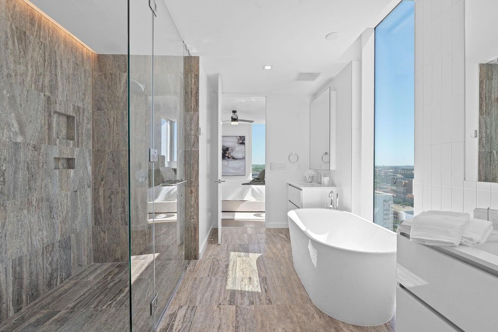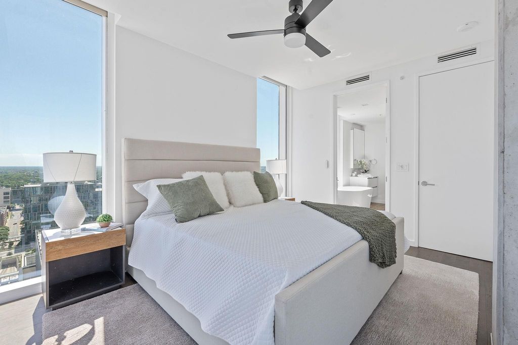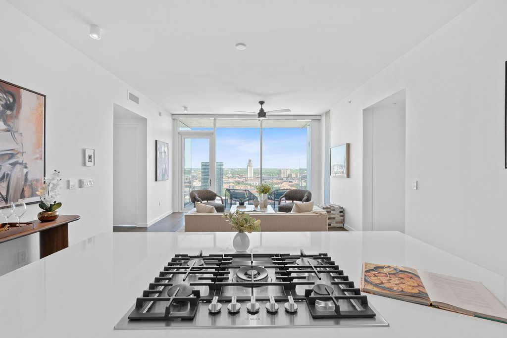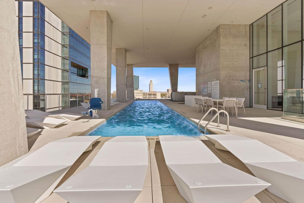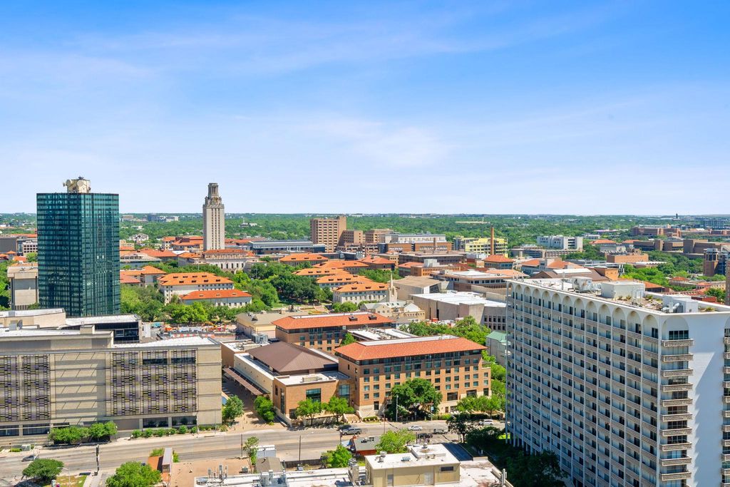 Perched on the 23rd floor of one of Austin's most architecturally striking new towers, Unit 2301 at The Linden is a show-stopping corner residence with panoramic views of the Texas Hill Country, UT campus, State Capitol, and the glittering downtown skyline. This 2-bedroom, 2-bath home is perfectly positioned to capture natural light and jaw-dropping views from every angle. An open-concept layout, floor-to-ceiling windows, and $40,000 in premium upgrades"”including motorized window shades (blackout in the primary suite) and custom closets"”make everyday living feel effortless. The spa-inspired primary bath is a highlight, offering a soaking tub with a front-row seat to the city below. A sleek chef's kitchen is outfitted with integrated Bosch appliances, Silestone countertops, and custom cabinetry. Enjoy premium finishes, hardwood floors, a private balcony, two reserved parking spaces, and in-unit washer/dryer. The Linden Residences, designed by award-winning firm Rhode Partners, is a 28-story luxury tower tucked into a quieter pocket of downtown"”just steps from UT, the Capitol, Dell Medical Center, and historic Judge's Hill. Amenities include: "¢ 65' lap pool, cold plunge, and sauna "¢ Owner's lounge, private dining, and conference rooms "¢ Outdoor kitchen, dog park, and more on the 10th floor Unit 2301 offers a lifestyle as elevated as its views"”sophisticated, serene, and effortlessly connected to the soul of Austin.