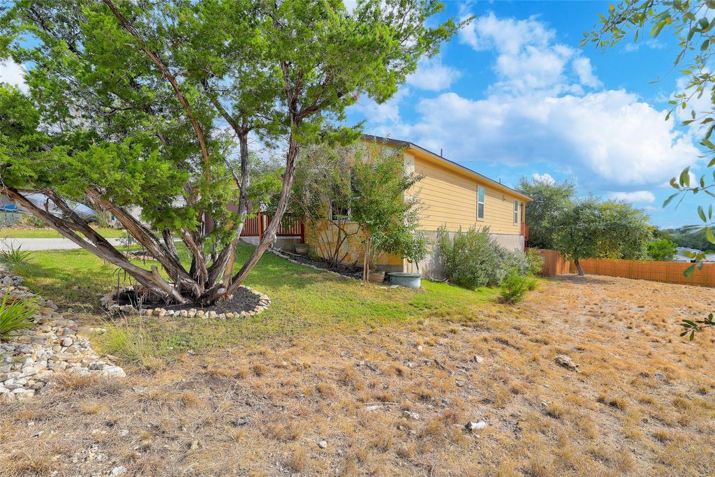 Your peaceful Texas Hill Country dream home or lake-life weekend retreat awaits in Lago Vista's Highland Lake Estates community! A warm and inviting interior welcomes you, with recently installed luxury vinyl plank flooring and freshly painted neutral blank canvas, ready for your personal touch! The home features modern finishes, including quartz countertops, sleek black kitchen faucet with LED spout light, smart thermostat, open-concept floor plan, and an abundance of natural light throughout. The large tree-lined backyard provides privacy and security, perfect for family and outdoor activities. With the thoughtfully landscaped backyard, you will always have an enjoyable outdoor space with plants and flowers that thrive in a variety of climates. Amenities within the community and surrounding area include fitness center, fishing pond, community pool and marina, parks, water access spots, boat ramps, hiking trails, and a golf range. This is your opportunity to experience the charm of small-town living in one of Lago Vista's most desirable neighborhoods! AGENTS - SEE PRIVATE REMARKS