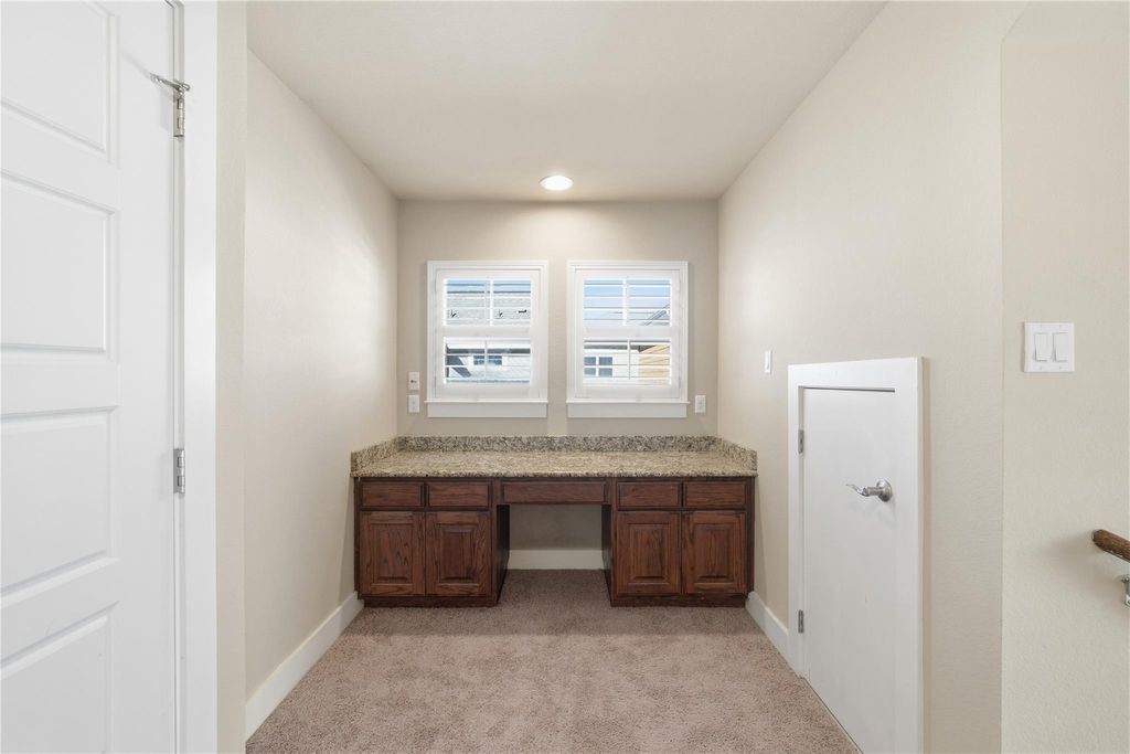 Discover this charming two-story home in a gated community in South Austin. The first floor features an open kitchen overlooking the living and dining areas, along with a secondary bedroom and full bathroom. Upstairs, you'll find the laundry room, a built-in desk area, and the spacious primary suite with a double vanity, walk-in closet, and walk-in shower. Enjoy the private fenced yard with views of a wooded area, plus a detached garage with a garage door opener. Conveniently located near popular shopping, dining, and entertainment options along Menchaca Rd, Southpark Meadows, and local neighborhood parks.