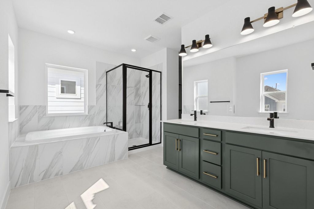 Step into your dream home, a captivating 2-story detached city home designed with both style and functionality in mind. Tall ceilings and abundant natural light create an airy and welcoming ambiance throughout the spacious interior. The well-appointed layout features four bedrooms and two and a half baths, providing ample space for both privacy and togetherness. Upstairs, you'll be greeted with a versatile loft space conveniently separating the 4 bedrooms. The owner's bathroom offers a luxurious garden tub and separate walk-in shower elevating everyday routines into moments of indulgence. Outside, an extended back patio beckons for outdoor gatherings and leisure, surrounded by a low-maintenance yard designed for effortless enjoyment year-round. Discover the epitome of modern living in this vibrant community boasting an array of amenities to suit every lifestyle. From the sparkling resort-style pool to the expansive network of over 13 miles of paved walking trails winding through lush landscapes, there's no shortage of opportunities for outdoor adventure and relaxation. For our furry friends, dedicated dog parks provide the perfect space for play and socialization, while the fully equipped fitness center invites residents to stay active and healthy. Our EnergySaverâ„¢ Homes offer peace of mind knowing your new home in Austin is minimizing your environmental footprint while saving energy. A David Weekley EnergySaver home in Austin averages a 60 on the HERS Index. Square Footage is an estimate only; actual construction may vary.