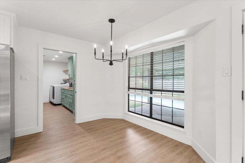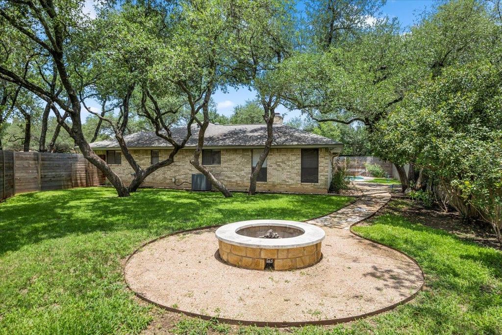 Stylishly remodeled 3BD/2BA home on a serene cul-de-sac in sought-after 78759. This bright, open-concept layout features vaulted ceilings with skylights, luxury vinyl plank flooring, and a spacious living area anchored by a brick fireplace and wood beam detail. The modern kitchen boasts quartz countertops, shaker cabinetry with slide-outs, under-cabinet lighting, and stainless appliances. Retreat to a reimagined primary suite with a spa-like bath featuring dual vanities, a walk-in shower, and freestanding tub. Enjoy a dedicated laundry room with custom storage and sink, plus a finished 2-car garage. Step outside to a backyard built for entertaining: screened-in porch, in-ground pool, turf lounging area, a fire pit, and a custom storage shed "” all surrounded by mature trees and thoughtful landscaping. Minutes to Arboretum, Domain, and top-rated schools with easy access to 183.