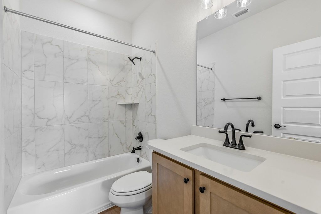 Move-in-Ready! Newmark Homes Alpine floorplan is waiting for you to make it yours! This two-story home features 4 beds, 3 baths, and a 2-car garage. Step inside and take in all of the glorious features this home has to offer, such as; luxury vinyl flooring, design upgrades throughout, top-of-the-line stainless steel appliances, and so much more. Downstairs you will find a large kitchen with a center island and Silestone counter tops, a family room that features a 50'' allusion fireplace, a bedroom, a full bath, a mudroom, and an extended covered patio for the days you want some relaxation outside spent with family and friends. Upstairs boast 3 bedrooms, one being the primary bedroom, 2 baths, a spacious game room, and an extended covered balcony so you can enjoy the stunning hill country view in the Sweetwater community. Don't wait! Call and schedule an appointment today!