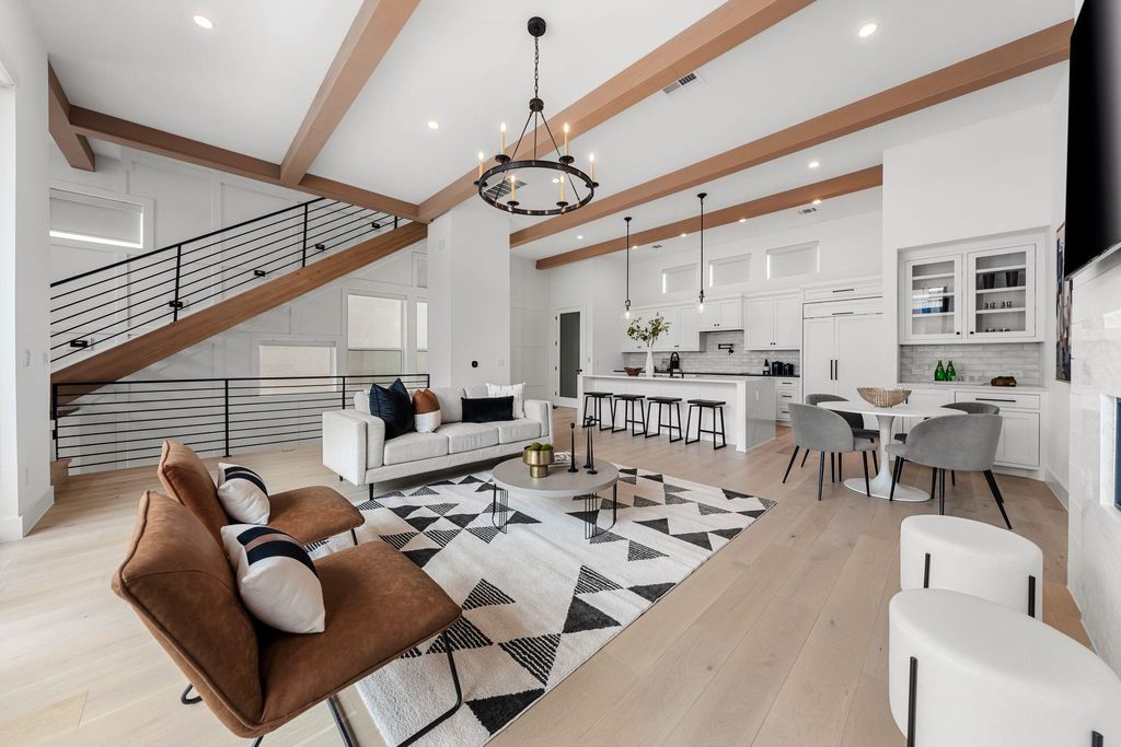 Welcome to this loft-style, tri-level property in heart of Bee Cave and in the thick of it all at the Hill Country Galleria. Literally steps from amazing restaurants, shops, fitness, entertainment and more this stand alone home is a study in luxury and comfort. All of your needs are met with 3 generous sized bedrooms, 4 bathrooms and almost 2400 square feet of high-end design and finishes. This property features high-end finishes throughout with beautiful white oak floors, high ceilings, incredible natural light and its own in-house elevator. The first floor offers your first guest bedroom with accompanying bathroom so friends and family have their own space. The second floor is your main gathering space with an incredible open floor plan living, dining and kitchen with 12 foot high, elegantly beamed ceilings, fireplace and enormous glass sliders for the indoor/outdoor lifestyle. The kitchen is well appointed with gorgeous white stone waterfall countertops, a Wolf oven and range, Wolf microwave and Subzero refrigerator. On warm days and nights you can enjoy dining al fresco on the deck large enough for table and chairs. The top floor has your primary suite with a large bedroom bathed in natural light, a walk-in closet and fantastic bathroom with white stone countertops and a glass enclosed shower with dual shower heads. An additional en-suite guest bedroom/office with beautiful views and your dedicated laundry room with new LG washer/dryer round out the third level. Other amenities include an attached 2 car garage, automatic blinds, powder room and Restoration Hardware light fixtures. Situated in the fantastic Lake Pointe Elementary and Lake Travis High School districts, this 2022 build has barely been lived in and shows like new construction. Don't miss out on the opportunity to own this stunning, move-in-ready home today.