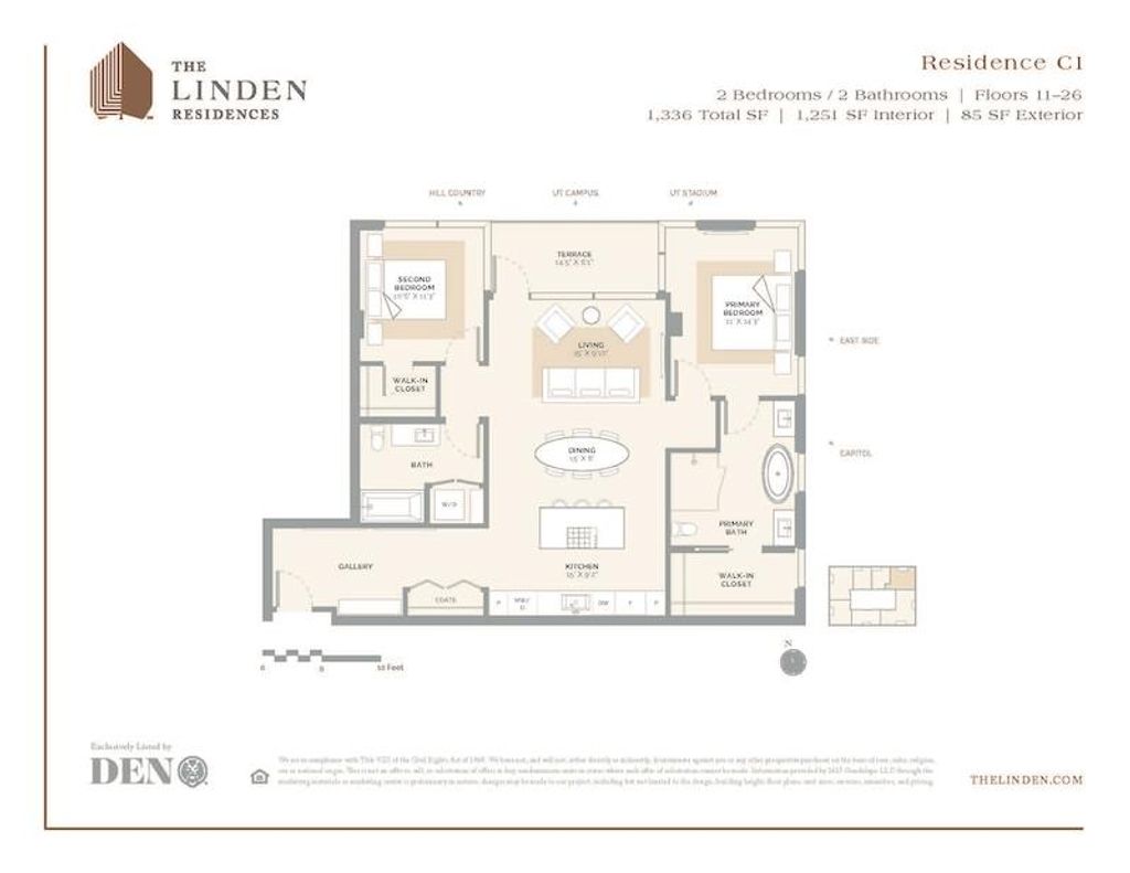 *** MOVE-IN READY, NEW CONSTRUCTION OPPORTUNITY *** The Linden Residences is a 28-story, contemporary tower that introduces a new concept in inspired living where world-class luxury meets Austin's artful soul. Designed by award-winning firm Rhode Partners, this new building brings a clean and polished aesthetic that's as striking as it is charming *** LOCATION AWAY FROM THE HUSTLE & BUSTLE *** Located at the nexus of the Texas State Capitol & the new Texas Mall, the traditional Central Business District, The University of Texas at Austin, the new Medical District & one of Austin's most beloved neighborhoods, Judge's Hill. This coveted locale offers residents an unparalleled lifestyle, seamlessly blending cultural richness, culinary delights, and entertainment vibrancy *** VIEWS OF HILL COUNTRY & UT *** Breathtaking views of the Texas Hill Country as well as UT campus & tower. Enjoy sunsets year round *** INTERIOR FEATURES *** Step inside to discover an open-concept layout flooded with natural light, premium finishes throughout, and a sleek chef's kitchen equipped with integrated Bosch appliances, Silestone countertops & custom cabinetry. The expansive living area flows seamlessly to a private balcony, perfect for morning coffee or sunset cocktails. The spacious primary suite features a spa-inspired bathroom with a double vanity, walk-in shower, soaking tub, & walk-in closet. Additional highlights include hardwood floors & floor-to-ceiling windows *** FIRST-CLASS AMENITIES *** Elevated amenities on 10th floor include a 65'-long lap pool, cold plunge pool & sauna, private dining & conference room, owner's lounge, outdoor cooking & dog park *** INCENTIVES FOR A LIMITED TIME *** Seller will pay title policy if cash or loan with preferred lender. Offering a RATE BUY DOWN (4.875%) on a limited number of residences for a limited time. Rates are subject to change. We look forward to welcoming you home to The Linden!