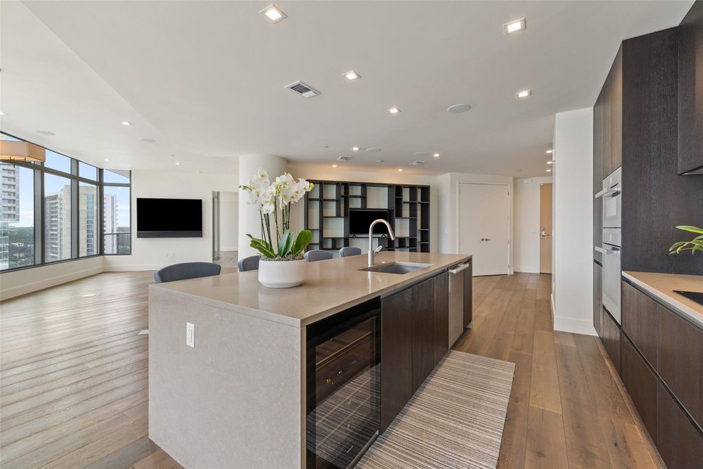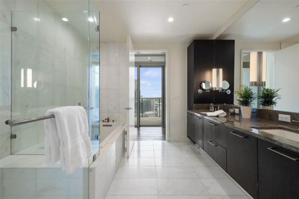 Great location and great panoramic views overlooking the Capitol View Corridor, one of the city's most protected corridors. This exceptional residence, #2303 is 3 bedrooms, 3.5 baths, with floor to ceiling windows, motorized shades, two private terraces and over 2800 SF with an open floor plan. All windows and glass doors are upgraded improving energy efficiency and providing a more comfortable interior. The chef's kitchen includes Miele appliances, a Wolf induction cook-top, Sub-Zero refrigerator as well as a wine fridge, and pantry. The primary bath has dual vanities, a frameless walk-in glass shower, large tub, Toto toilet and two walk-in closets. The unit has wide plank white oak floors, Nest thermostats, USB outlets, keyless entry, Sonos/surround sound, two premium parking spots with two electric vehicle chargers. Four plasma Sony televisions with sound bars and amps are included. Fifth & West offers resort style amenities with a state of the art gym, a work lounge, a party space with a catering kitchen, wonderful pool with great views, a dedicated dog park and guest suites for your friends. The live music capital, diverse food scene, outdoor recreational attractions, and cultural options are right outside your front door. Enjoy and explore downtown including Austin Central Library, Lady Bird Lake, the hike and bike trail, Book People, Whole Foods, many great restaurants and of course all the live music venues.