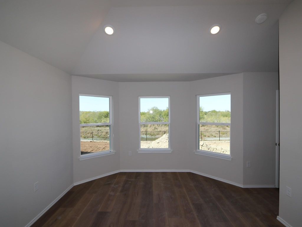 Upon entering this home through the covered porch, you will find two private bedrooms and a full bathroom tucked immediately off the entry. Continuing through the entry you will find the laundry room nestled in a private hallway and an additional bedroom. Further down the foyer you'll be greeted by the open, seamless living areas. The kitchen boasts an oversized kitchen island that opens to a huge family room and dining room. You can also move the dining and entertaining outdoors on the covered patio .Your owner's suite is tucked away at the back of the house with access off the family room. The large bedroom features an optional extended bay window for extra space and plenty of natural light. Double doors for a grand entry into the owner's bath retreat that features a spacious walk-in shower. The owner's retreat also features a massive walk-in closet to store all your belongings, plus room for more!