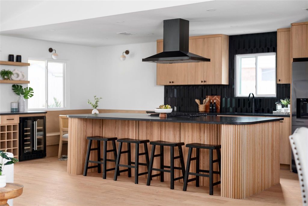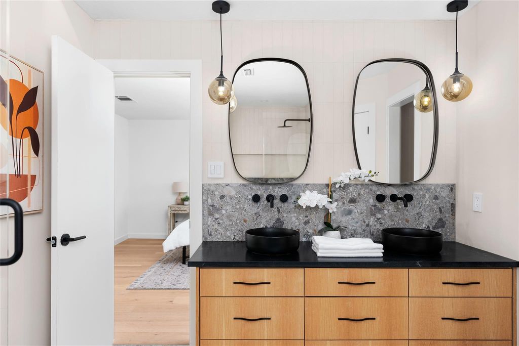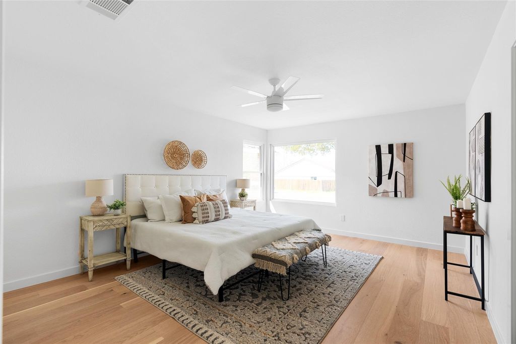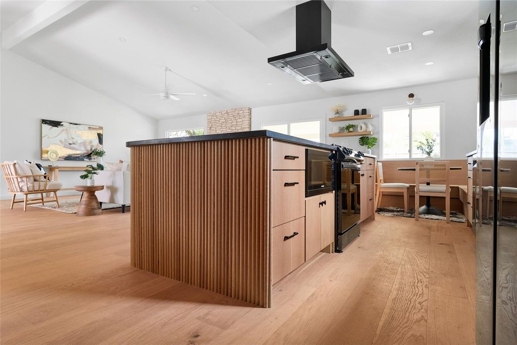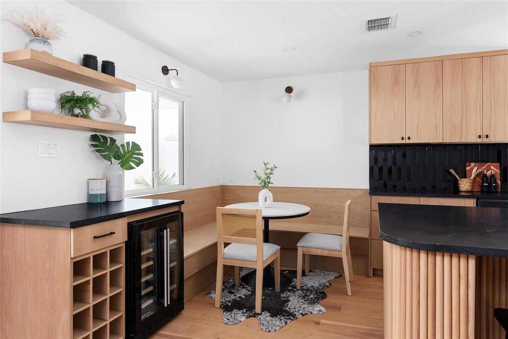 Unique, high-end remodel just minutes from the Domain, Q2 Stadium, and Walnut Creek Park. This 4 bedroom, 2 bath home features custom European-style white oak cabinets throughout with soft-close Blum hinges, beautiful Brazilian natural stone countertops, and engineered hardwood flooring. With a new roof, new double-pane windows, new water heater, custom slatted facade, and fresh landscaping, you will admire this new home inside and out. As you step through the entryway, you will find an open concept layout with all new light fixtures. The redesigned kitchen area includes a new built-in bench in the breakfast nook, large island with pop-up outlet, new black stainless-steel appliances, striking backsplash, and plenty of counter space and cabinets, including a pull-out trash can and oversized spice rack. As you look out from the large living area, you will find a covered patio overlooking the large backyard and a new modern fire pit. Inside the primary suite, you will find a spacious bedroom that leads you to the primary bathroom with two walk-in closets, gorgeous terrazzo flooring, and a walk-in shower featuring a rain showerhead. The 3 guest bedrooms sit across the master suite and share a bathroom that includes stunning tile. The 2-car garage has a new epoxy floor and is connected to the new indoor laundry space. This is a one of a kind home that could be yours!