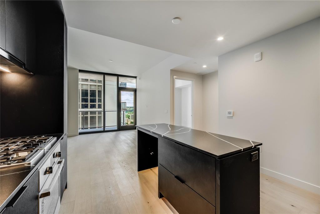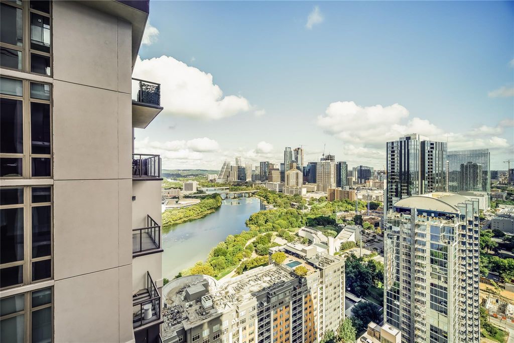 Beautiful 1 bedroom 1 bath condo in Austin's most popular 44 East condominium high rise by Rainey district with beautiful Lake Austin and Downtown views! Condo features include high ceilings, wide wood plank flooring, built in refrigerator, washer, dryer, motorized shades, fan in bedroom and living room, one reserved parking spot, and a magnificent view of downtown. Resort style amenities on 37th and 11th floors include multiple spaces to relax with panoramic views, pool, fitness center, yoga studio, dog park and spa, multiple conference rooms, and many more conveniences to residents including cooling storage for fresh foods, and 24 hour concierge; Easy access to the park and lake across from the tower!