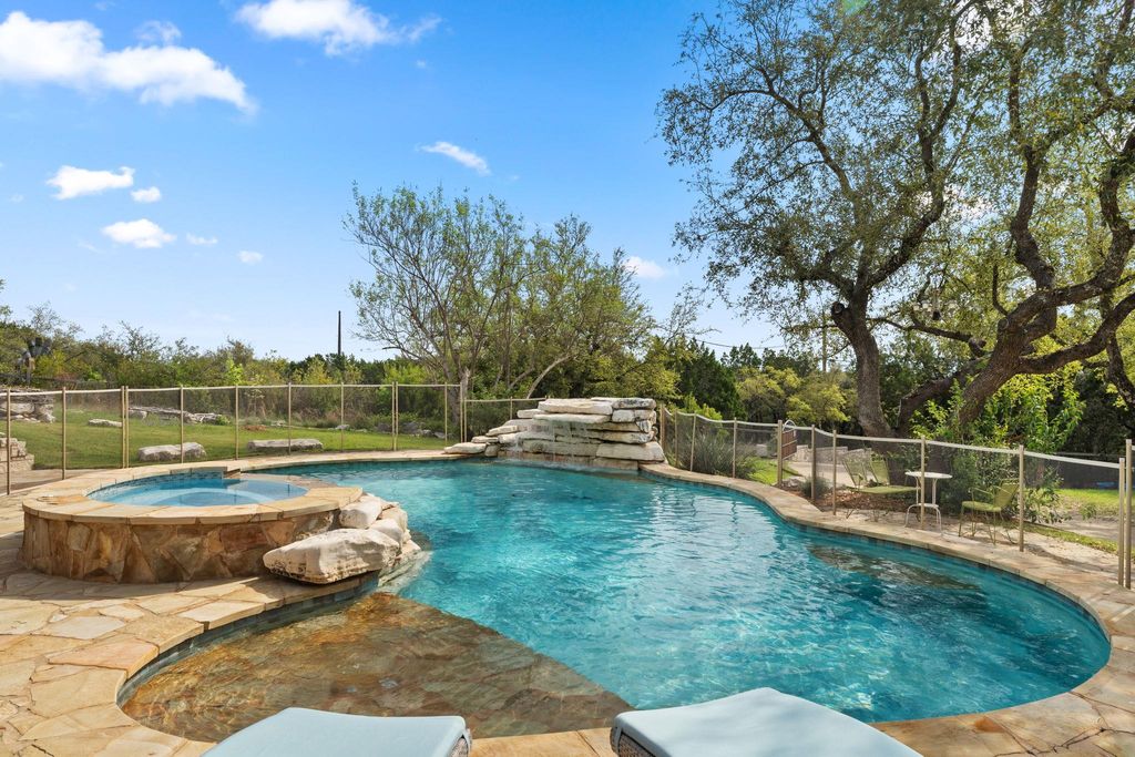 Entertainer's paradise & lake lifestyle! SELLERS WILL PAY FOR 4TH BEDROOM CONVERSION ON MAIN FLOOR. Gated private driveway leads through a picturesque estate featuring a beautiful custom pool w/limestone cascade waterfall feature, spa & a large covered patio perfect for entertaining all year round. A haven for outdoor enthusiasts, offering endless opportunities for relaxation & fun. Designed to maximize natural light & striking views through picture windows. Gourmet kitchen features a chef's island open to the dining & living room. Huge flex room overlooking the scenic yard/pool can double as a 2nd living space, game room, gym or 4th bedroom (w/door added). Meticulous attention paid to every detail including durable & easy to clean stained concrete flooring downstairs & new European white oak wood floors upstairs & built-ins. Primary bedroom upstairs designed to provide tranquility w/private hallway to en-suite & spacious walk-in closet w/ample storage & custom built-ins. Newly remodeled primary bathroom offers elegance & a serene retreat w/soaking tub & huge walk-in shower. All rooms have spectacular views, large closets & connect to an updated bathroom. Additional bonus craft/office/playroom. The multiple garage bays include EV charging, boat/RV storage, workshop/perfect MAN CAVE. SOLAR panels add energy efficiency & $0-very low electricity bills. Few HOA restrictions. STR friendly! Zoned for exemplary LTISD schools, <5 min. from Mansfield Dam & Jessica Hollis Park boat ramps & 15 min. to Steiner public boat ramp. Vol. HOA. Located in ETJ. Easy access to Lake Travis, Lakeway, CP, NW Austin & <25 min. to Central Austin w/-5 deg. cooler temps. & chicken coop conveys!