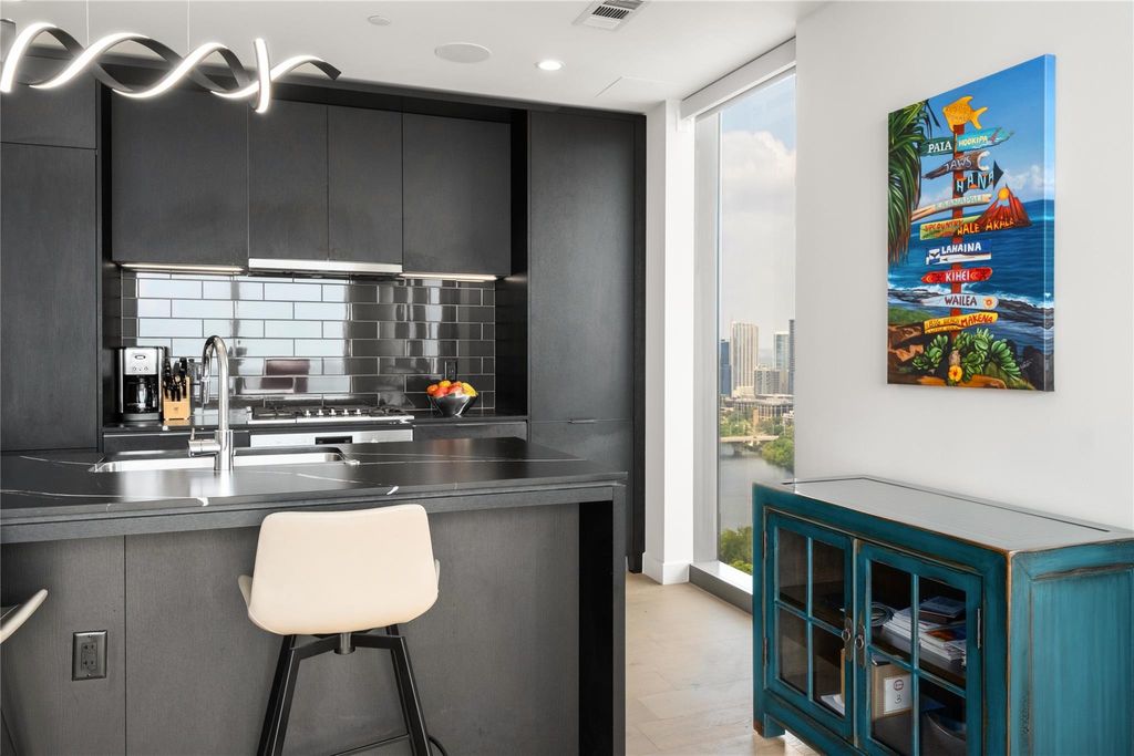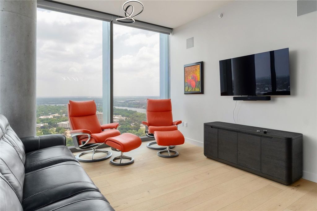 Experience dynamic views of both the sunrise over Lady Bird Lake to the east and the sunset over Downtown's skyline to the NW. Situated at the foot of Lady Bird Lake, strategically tucked away from the hustle & bustle of Rainey Street yet still walking distance. Easy access by vehicle via East Ave - no need to drive Rainey St! With all of the exciting new development happening on Rainey Street, this is a great opportunity to get into Downtown Austin's next hottest area while at the forefront of pricing. Exceptional finishes designed by Page Architects, floor-to-ceiling glass, Italian cabinetry, quartz counters, white oak hardwoods, built-in Bosch appliances, upgraded surround sound, motorized shades, 2 full size garage parking spots. Curated amenities include 24-hr concierge, fitness center, yoga studio, resort-style pool, spacious deck/grill areas, conference rooms, 37th floor sky lounge, 2 dog parks, pet spas, guest suites, and more! **Furniture negotiable