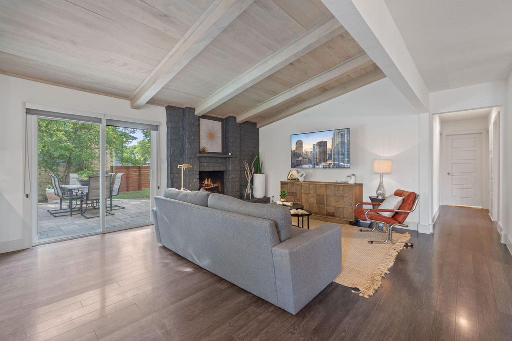 Charming Eastside Retreat on a Spacious Corner Lot! Welcome to this inviting 3-bedroom, 2-bathroom home perfectly located just minutes from Downtown Austin, ABIA, and some of East Austin's trendiest restaurants and social hangouts. Warm wood-toned floors and a neutral color palette create a timeless aesthetic throughout, complemented by brand-new designer paint and a striking accent wall in the dining area. The open floor plan seamlessly connects the living area to the kitchen, featuring modern white cabinetry, stainless steel appliances, a new gas range installed in 2025, and a cozy wood-burning fireplace. The vaulted living room ceiling is beautifully lined with oak planks and accented with beams, adding warmth and character"”ideal for relaxing evenings and gatherings. Vaulted ceilings in the primary suite enhance the airy feel, while the spa-like ensuite bathroom was fully remodeled in May 2025 with a walk-in shower and fresh, modern finishes. Additional highlights include a Murphy bed in the guest room, a 2-car garage, an Ecobee smart thermostat, and flexible secondary bedrooms perfect for guests, family, or a home office. Step outside to your expansive backyard retreat: a huge rock patio offers plenty of room for outdoor dining, grilling, and entertaining under the stars. Enjoy cozy evenings around the firepit, dinner al fresco, or coffee in the morning sun. The backyard has plenty of space for gardening or a playscape and is ready for your vision. The home also boasts a new roof installed in 2021 and is within walking distance to Walnut Creek Park, offering miles of trails, green space, and nature activities. Located in a vibrant community with access to major highways, trendy dining spots, and local shops, this home combines comfort, convenience, and style.
