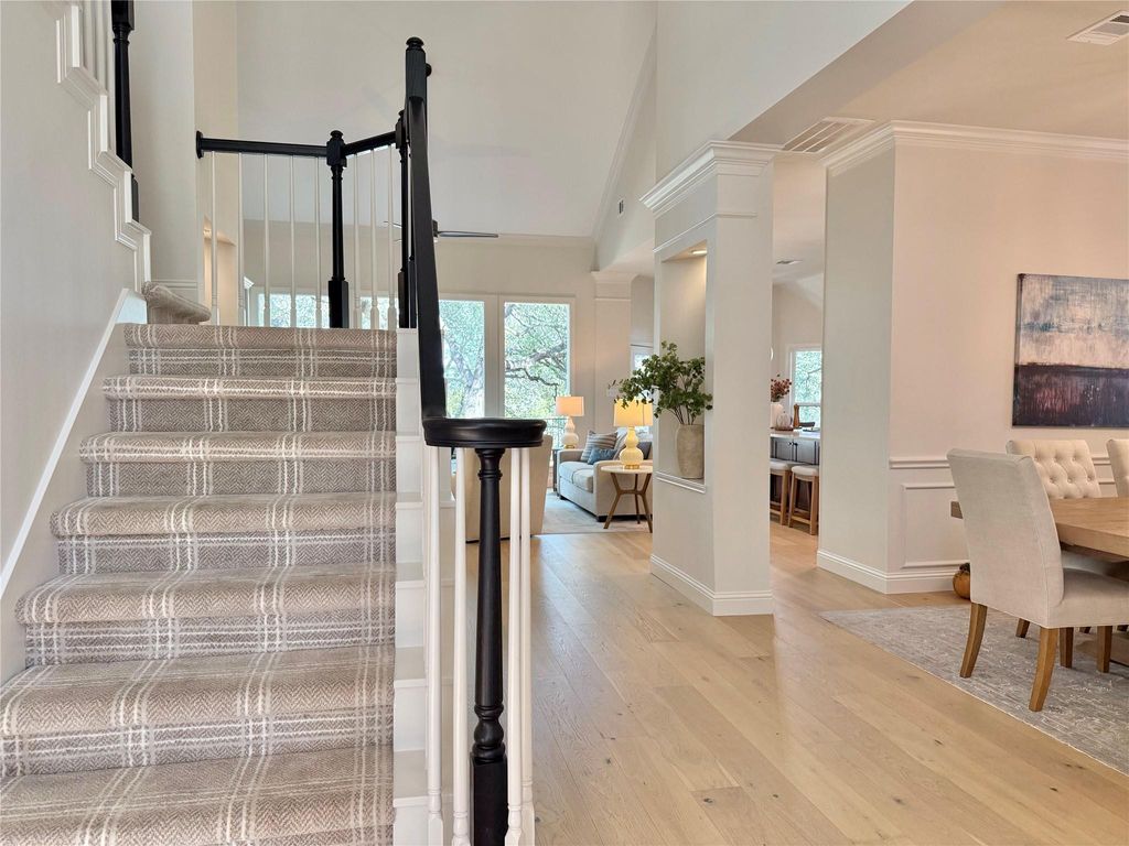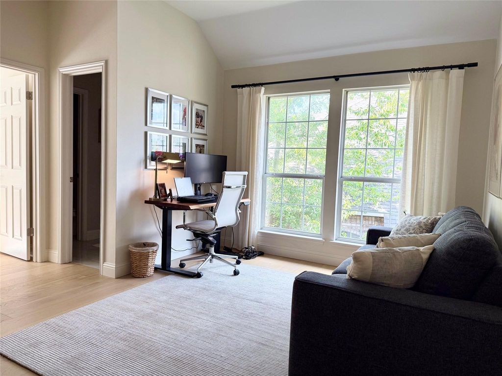 Gorgeous home that has been remodeled with new cabinets and counters in kitchen, new windows, beautiful new flooring throughout, painted brick, built in bookshelves, new lighting throughout and new interior paint. This home has it all with a private back yard and wrought iron fence with an amazing porch to enjoy the green area behind the home. During the spring the green space is filled with wildflowers.