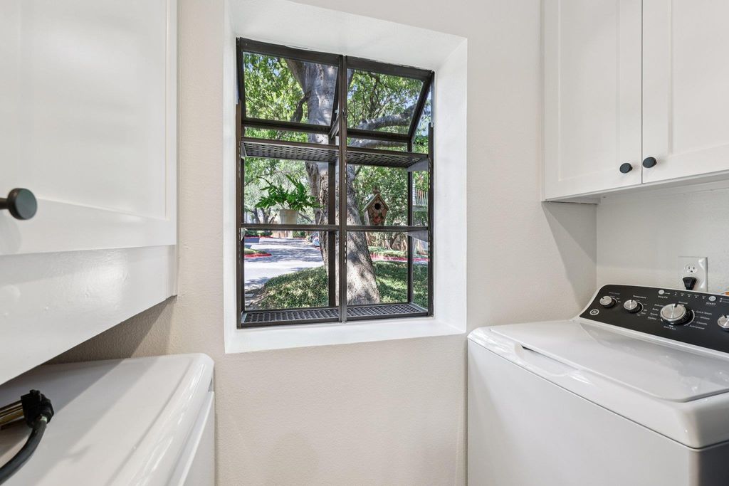 Beautifully updated from top to bottom, this townhome is truly the best value in this gorgeous, well-maintained gated complex set in a park-like setting with mature oaks and lush landscaping"”right in the heart of Austin. Every detail has been refreshed, including kitchen & bath cabinetry, black matte hardware, quartz counters, designer backsplash, modern double farm sink, black appliance package, new doors, fireplace redo, stylish fixtures & recessed lighting and paint!!. Gorgeous new wide vinyl wood-plank flooring runs throughout, highlighted by reclaimed-wood stairs for a custom touch. The open layout offers a modern walk-in pantry, built-ins, abundant storage, and a standard-size washer and dryer. Upstairs, the spacious primary suite features vaulted ceilings, a large double-sink bathroom, and a private balcony. The secondary bedroom also boasts vaulted ceilings and abundant natural light. Relax outdoors on the oversized paved patio or enjoy the community's resort-style pool and spa surrounded by mature trees and beautifully grounds. HOA dues cover exterior maintenance, landscaping, and more"”offering true peace of mind. Conveniently located near top schools, shopping, restaurants, and major highways, on Metro bus stop,and just 10 minutes from Downtown Austin. Seller is including a home warranty and up to 3 months of HOA dues with purchase. Move-in ready and unmatched at this price!