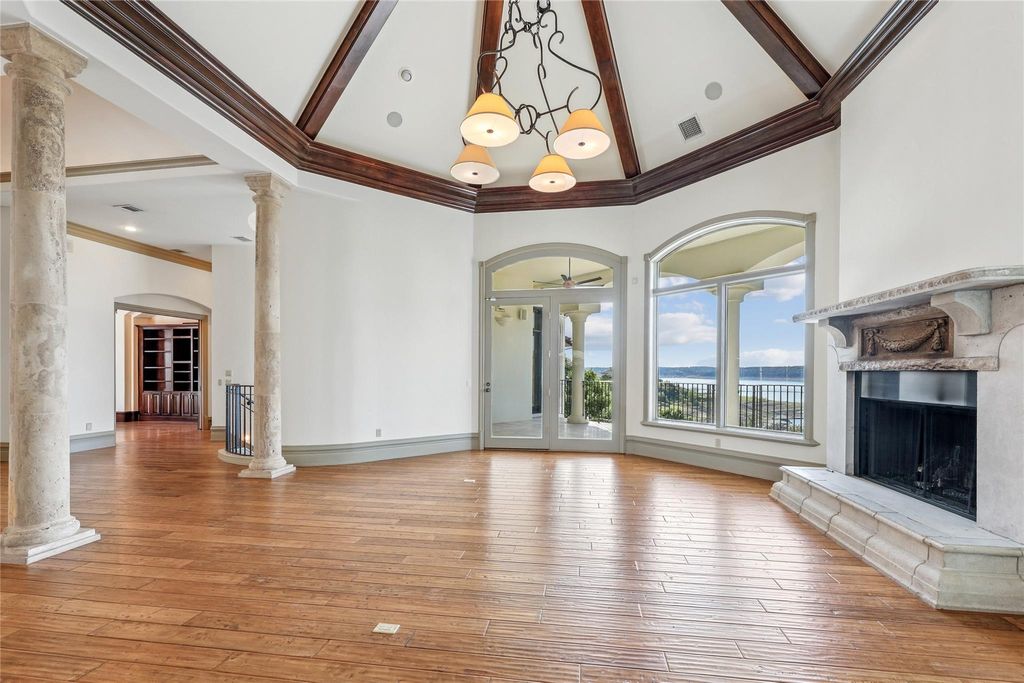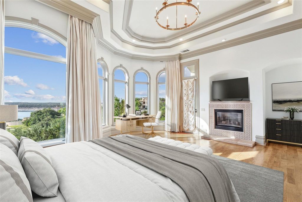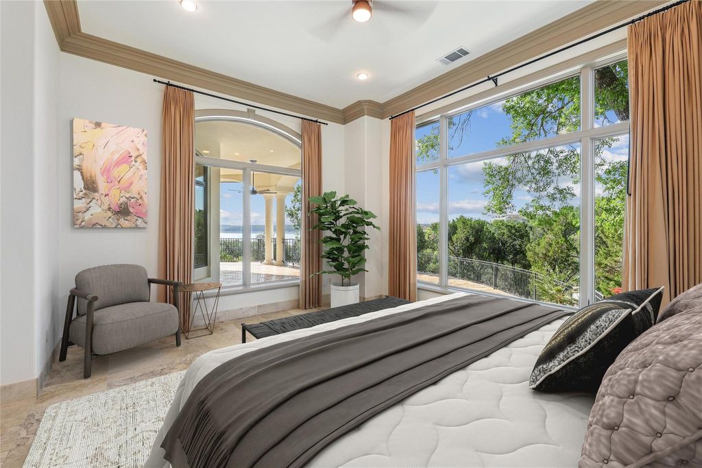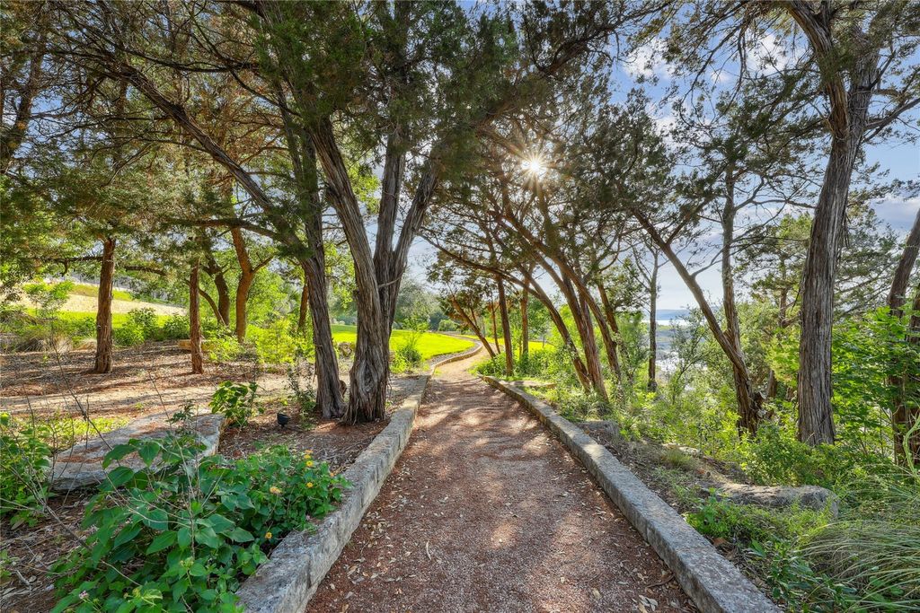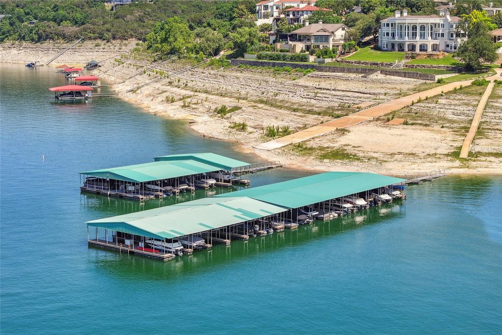Lakefront Italianate masterpiece with stunning Lake Travis views from almost every window and room in the house. Situated on 1.5 manicured acres within the prestigious gated Vineyard Bay neighborhood. Updated, meticulously cared for and elegantly appointed. "˜Old world craftsmanship' and an absolute commitment to the architectural vernacular. Lavish woodwork begins with the imposing handmade arched double entry doors then woven throughout in the form of custom beams, luxurious crown molding, coved, domed and coffered ceilings... a rich, robust vocabulary that flows from room to room, the warmth of wood subtly juxtaposed against the "˜cool' elements of the hand plastered walls, travertine floors and marble columns. Similarly the forms expressed throughout the home, each room its own elegant expression brought together into a thoughtful symphony of form and material. Coved, barrel vault and domed ceilings, multi-level tray ceilings framed with intricate crown moldings, coffered and beamed, each its own unique, intimate experience yet seamlessly part of the whole. The thoughtful symmetry of architecture, fit and finish extends to it being a true multi-modal lifestyle home, designed to accommodate multi-generational living, entertainment or vacation arrangements. Amenities abound - enjoy an afternoon on the sun soaked pool and pool deck, spend the day on Lake Travis via your private boat slip, hike down the lighted trail through the woods to the waterfront, enjoy prodigious sunsets over the lake from the expansive colonnaded double balcony, gather in the theater room for movie night or with friends and neighbors at the community clubhouse. Completely independent living quarters downstairs with its own living, dining and kitchen, all accessible by elevator. Master suite boasts spectacular lake views and double ensuite bathrooms. Stately home office. Wine room. Thermador appliances. Must-see elegant lakefront lifestyle estate in one of Lakeway's premiere neighborhoods.