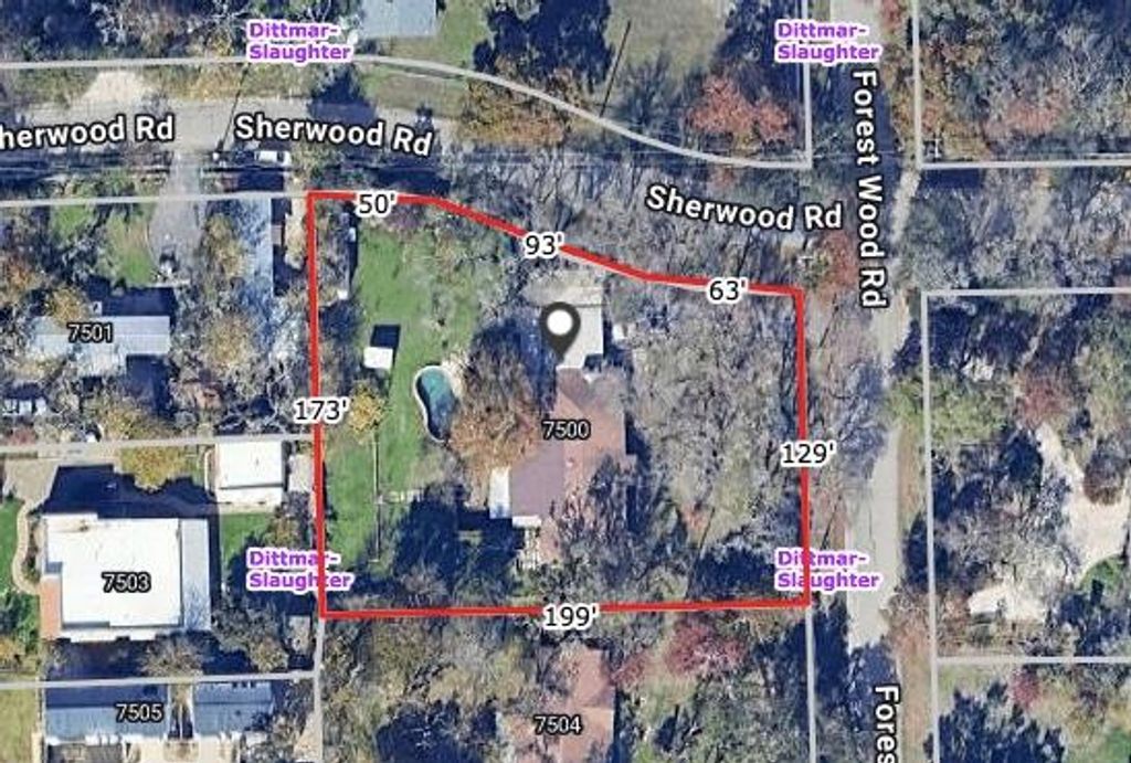 HUGE CORNER LOT in South Austin's Elmwood Estates. This property is on an expansive .68 acres, with an in-ground pool, sprawling covered patio and a separate workshop in the backyard. Lined with beautiful 30ft pecan trees, this 3 bedroom 2 bath, 2700 sqft ranch style home built in 1964, has been well maintained and has many different living areas including a den with a fireplace, a large enclosed game or entertainment room, a "tinkering" workspace with a built-in desk and bookshelves. The kitchen is open to the dining and oversized family room. Ample storage including a surplus walk-in pantry and two large standing safes located in the spare closets. Wood and tile flooring are found throughout the home. There is also an oversized, ventilated "handyman's garage" in addition to the freestanding backyard workshop. An excellent opportunity for remodel and/or add ons to the home. The workshop in the backyard could be converted to an ADU which already has a separate electrical meter. Several updated systems including water heater, HVAC as well as the replacement of all cast iron pipes; The home is even wired for a speaker system inside and outdoors. 7500 Forest Wood Rd is just a couple minutes walk to Dittmar Recreation Center that has a pool, indoor basketball court, soccer field, disc golf, playground and walking trails meandering next to Slaughter Creek. There are plenty of grocery stores including Sprouts and a few HEB's to pick from as well as numerous restaurants and entertainment within a few miles of the home. Priced below TCAD assessed value; Selling *AS-IS*