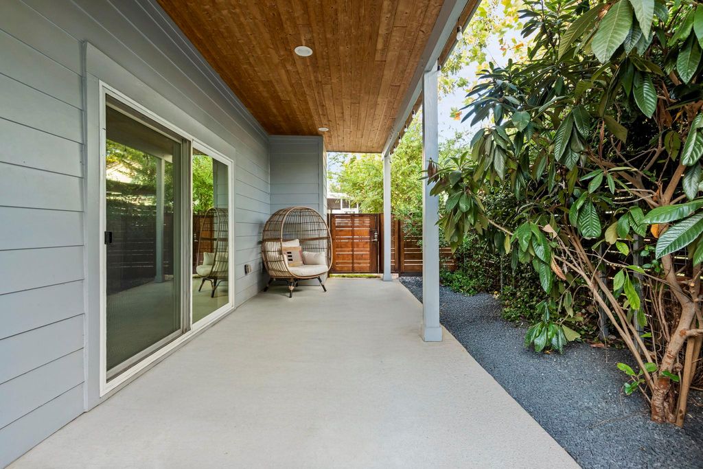 A truly rare find on one of the best blocks in Holly, this single-story B unit offers one of the most sought-after ADU floor plans in the neighborhood"”just steps from Lady Bird Lake and Austin's most beloved dining and coffee spots. Thoughtfully designed with high-end finishes and abundant natural light, the home features two spacious bedrooms, including a primary suite with an ensuite bath, a second full bathroom with built-in laundry, and extra storage tucked behind the primary closet. The open living space flows seamlessly into a full-size kitchen with custom cabinetry, a custom island that conveys, and open pecan live-edge shelving"”blending warmth and modern design. Sliding screen doors connect the indoors to a beautifully landscaped covered patio, creating an effortless extension of the home. A private alley entrance with dedicated parking, a custom metal gate, and intentional landscaping ensure both privacy and ease. Every detail has been considered in this one-of-a-kind opportunity"”single-level living, a smart layout, and a balance of comfort and design"”all in the heart of one of Austin's most walkable, creative, and vibrant neighborhoods. Just steps from Lady Bird Lake, restaurants, and the best of East Side living, this Holly home captures the essence of what makes the area so special.