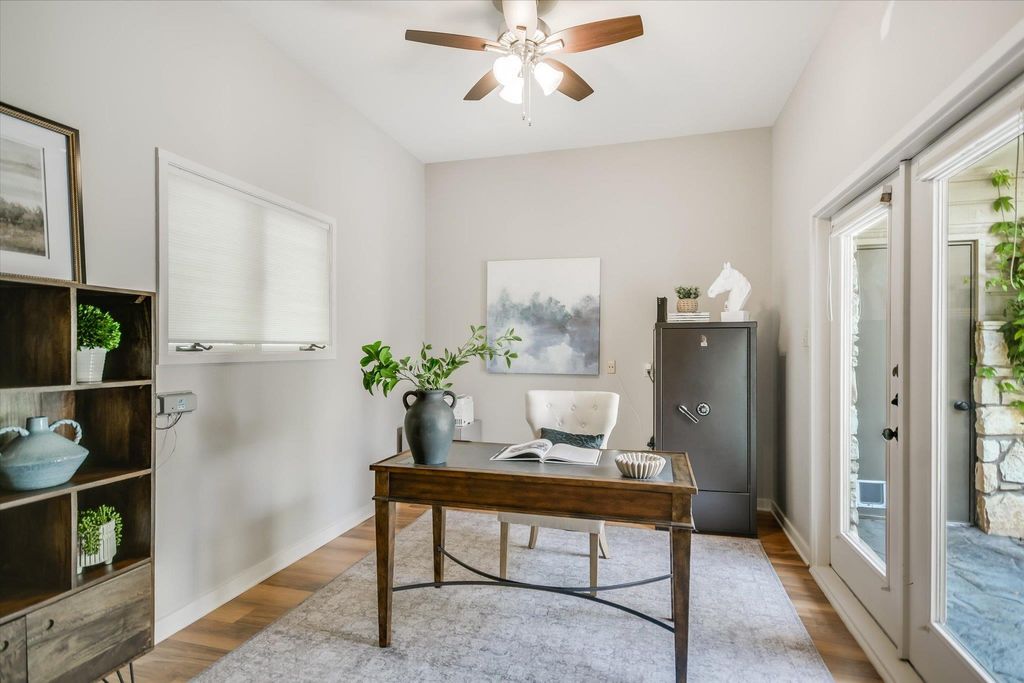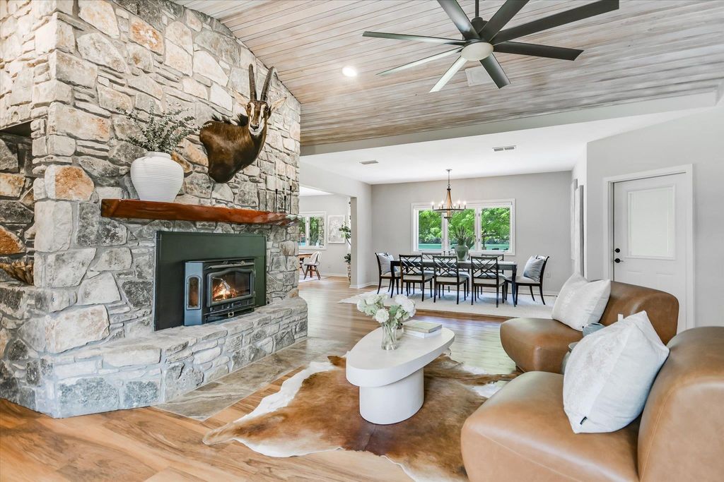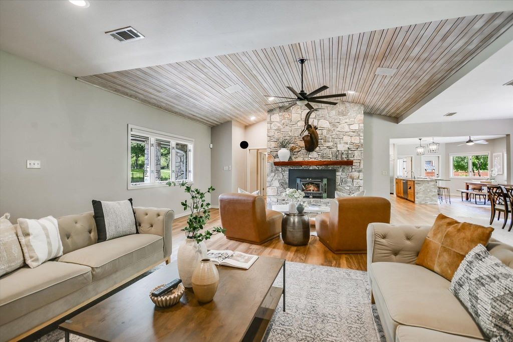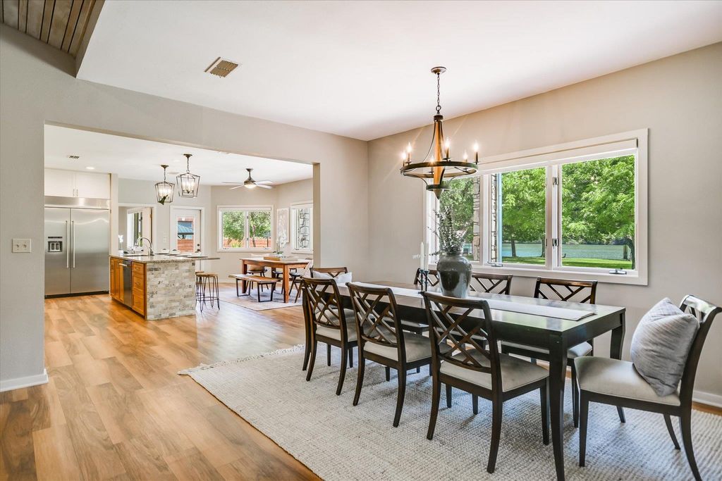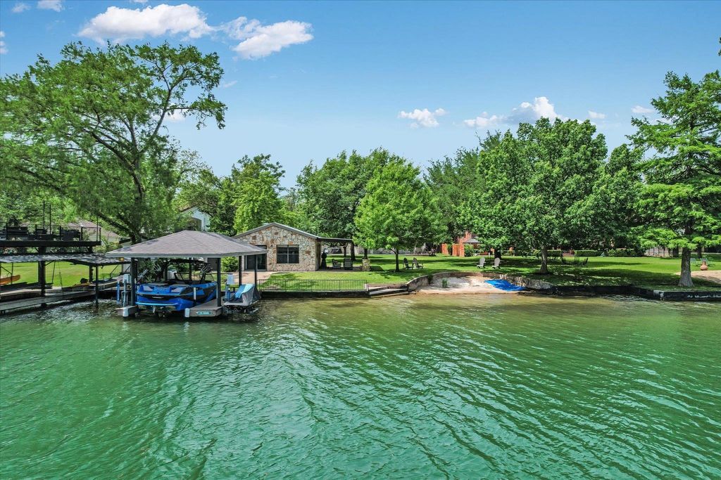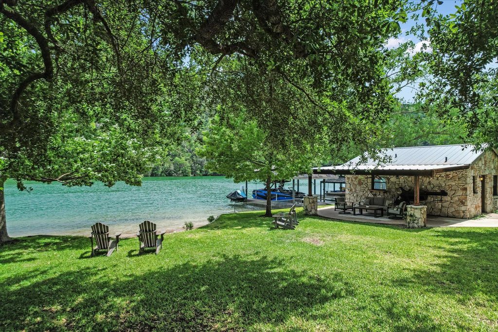 Tucked away on a peaceful cul-de-sac adjacent to Austin's beloved Emma Long Park, this charming waterfront estate offers a rare blend of natural beauty, privacy and timeless design. Built for effortless living, the main residence lives like a single story home, featuring spacious living areas, chef's kitchen, two bedrooms, office and exercise room on the main level. Oversized windows bathe the interior in natural light while showcasing panoramic lakefront vistas. The heart of the home is an open concept kitchen outfitted with Thermador and KitchenAid SS appliances, a large center island, quartz/granite countertops and custom cabinetry. The ~485sqft lakeside guest house adds flexibility with a separate fully appointed kitchen, bedroom, bathroom and cozy living area ideal for hosting guests or multi-generation living. Outdoor living takes center stage with expansive IPE wood decking and a covered lake side patio perfect for al fresco dining. ?A level, walkable lot leading to a sandy beach is ideal for swimming, paddle boarding and lounging by the water's edge. As one of the few homes in the neighborhood equipped with a Generac whole home generator, this property offers peace of mind, providing comfort and security year round. Ski Shores Cafe is just a short walk away where you can enjoy dining, pickle ball and connecting with neighbors! This timeless retreat is move-in ready or can be remodeled into your dream home! Owner/Agent